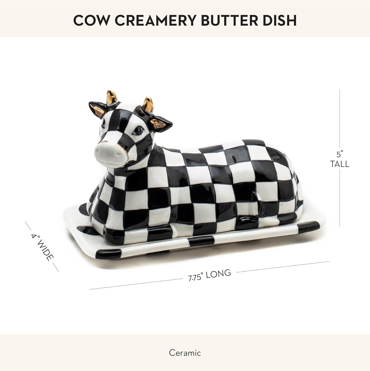 MACKENZIE-CHILDS Cow Creamery Butter Dish, Black-and-White Ceramic Butter Dish with Lid