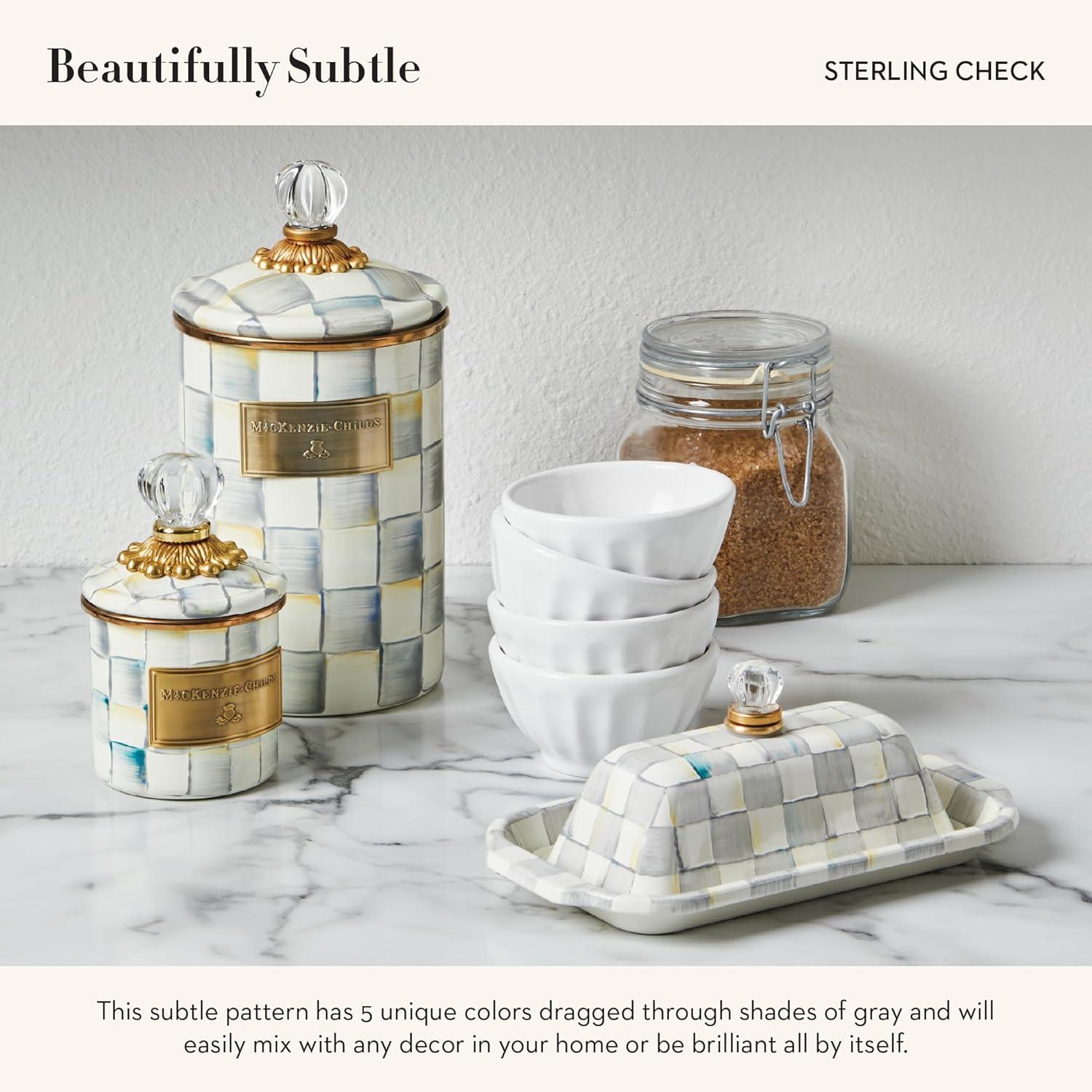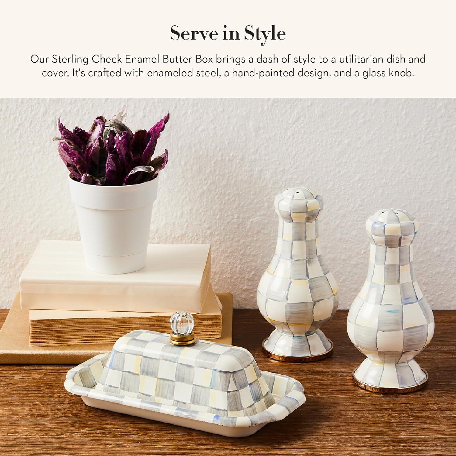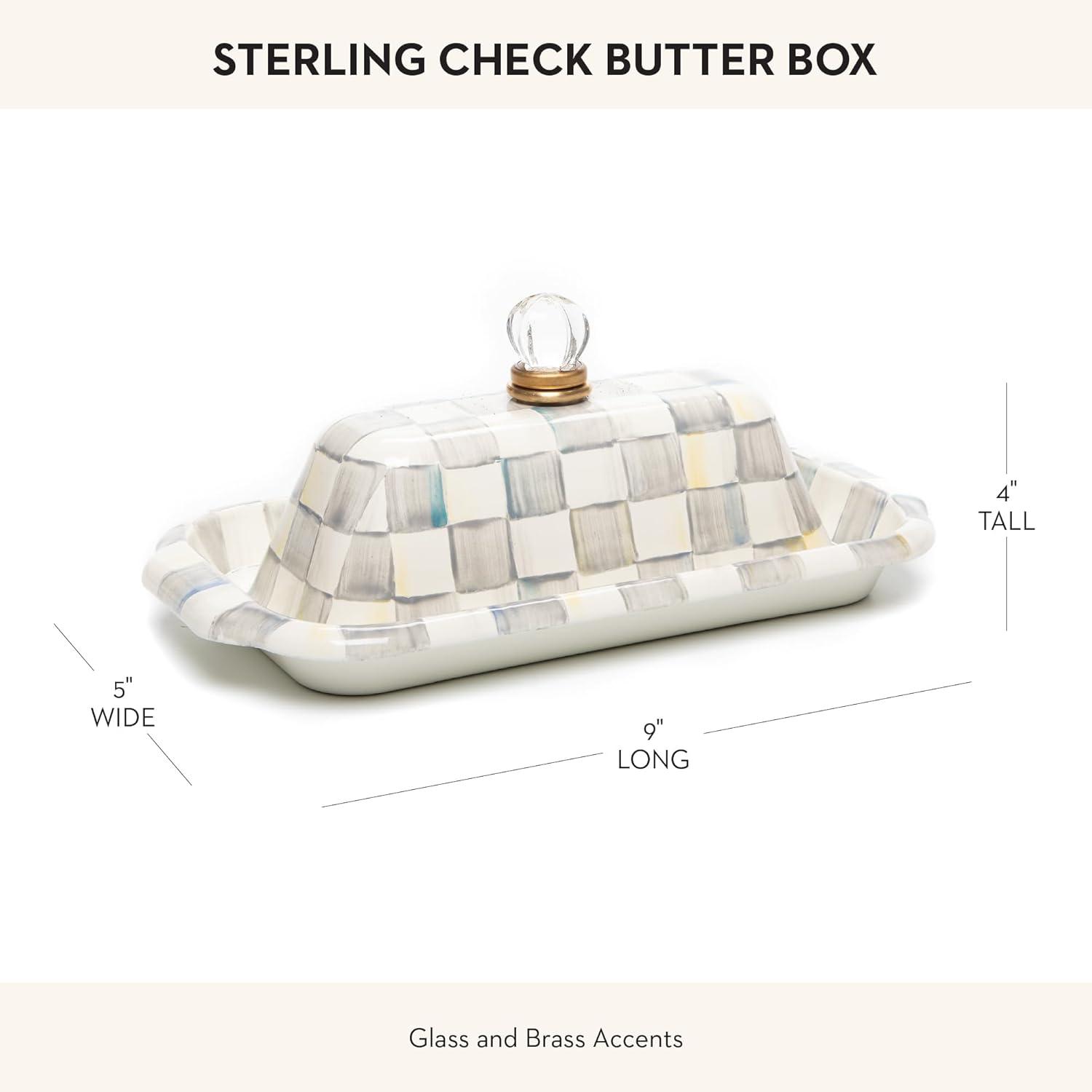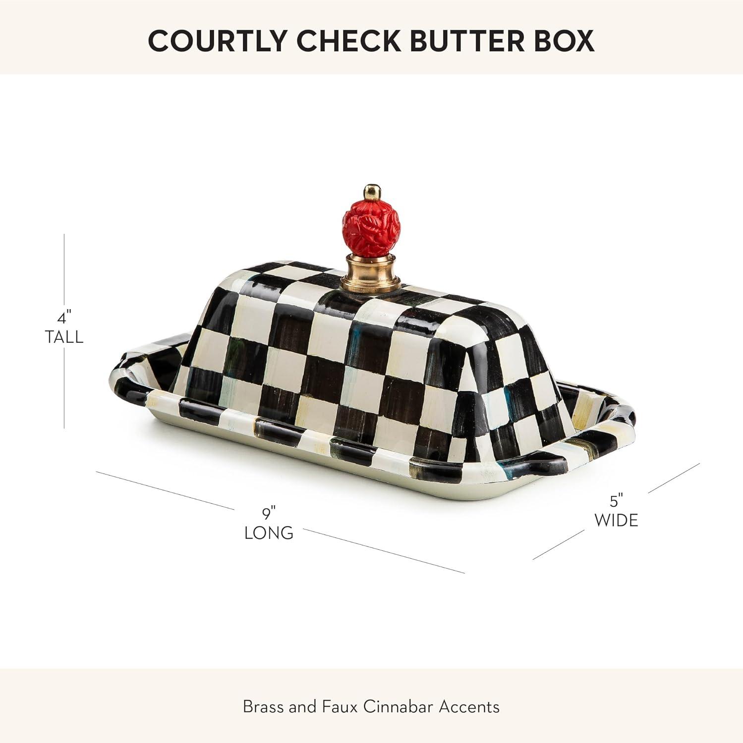 MACKENZIE-CHILDS Enamel Butter Box, Cute Lidded Butter Dish, Black-and-White Courtly Check(Sterling Check)