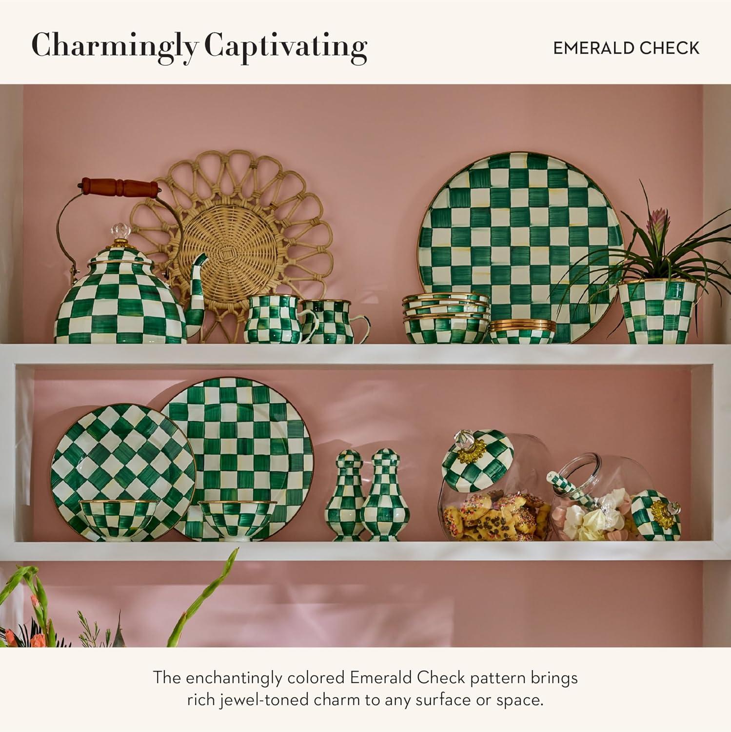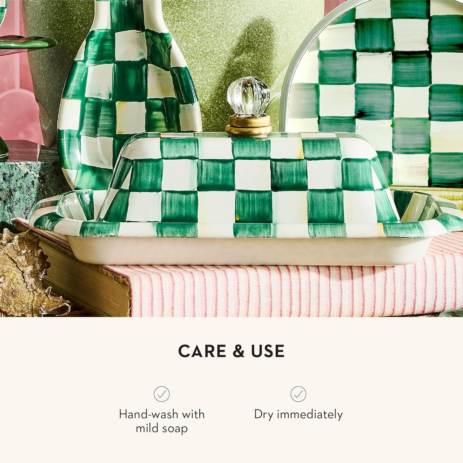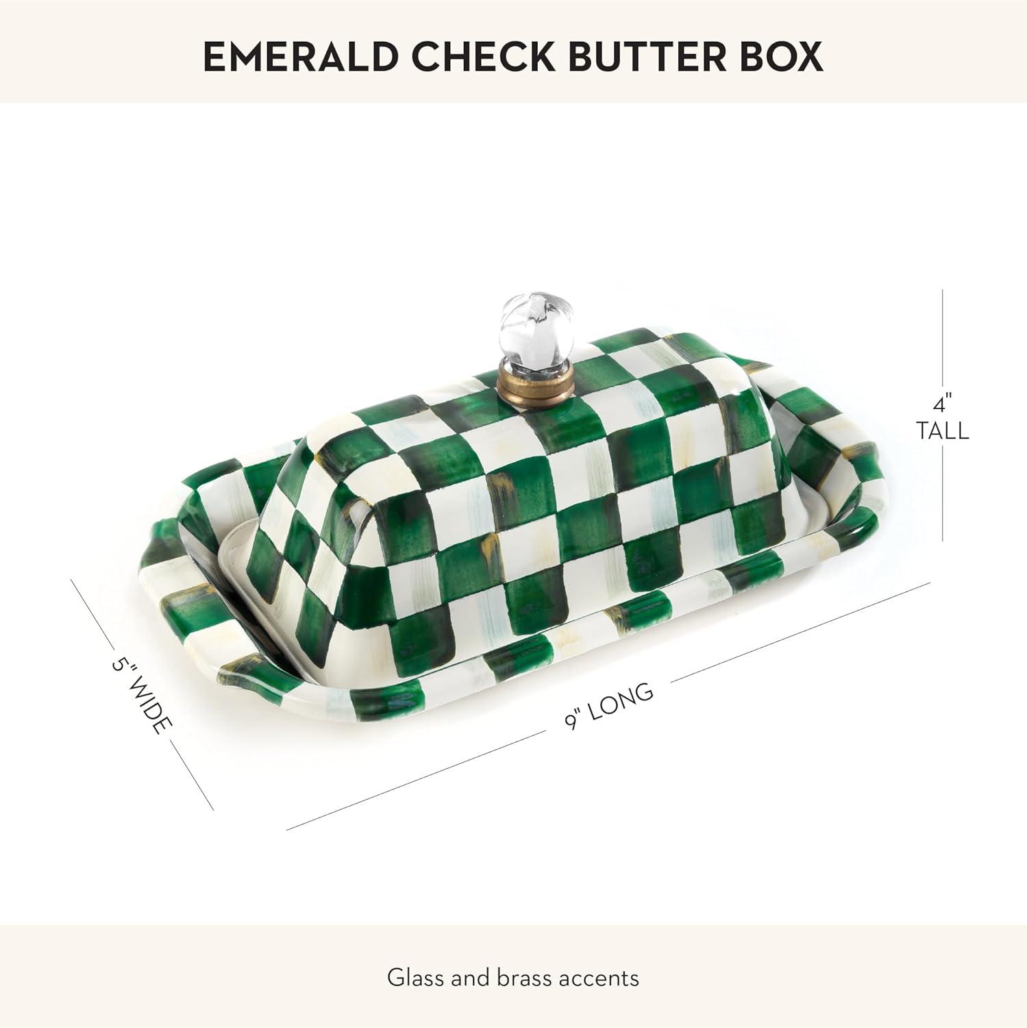 MACKENZIE-CHILDS Enamel Butter Box, Cute Lidded Butter Dish, Black-and-White Courtly Check(Emerald Check)