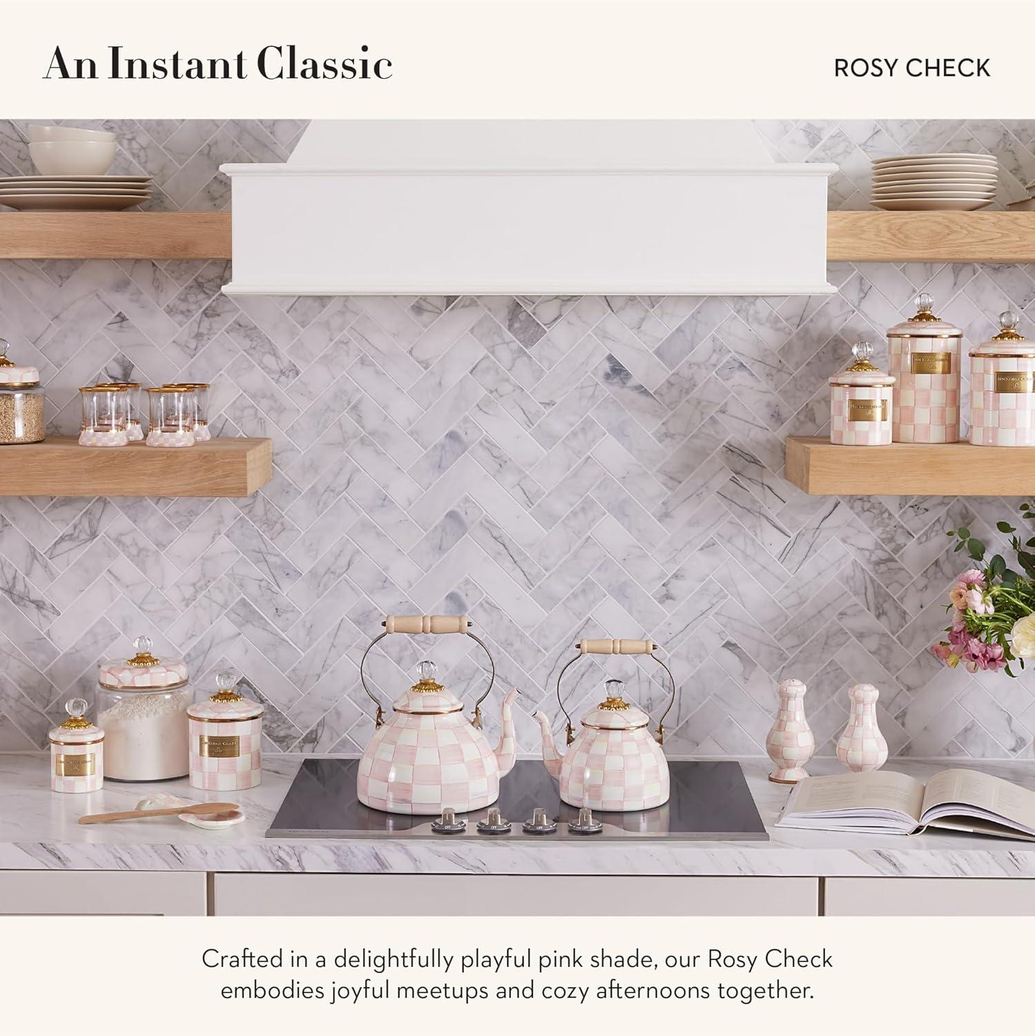 MACKENZIE-CHILDS Enamel Grinder, Refillable Manual Salt Grinder and Pepper Grinder, Black-and-White Courtly Check(Rosy Check)