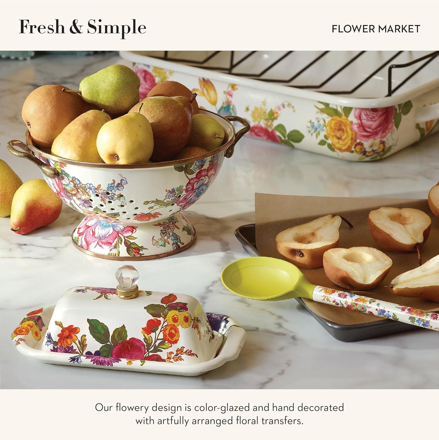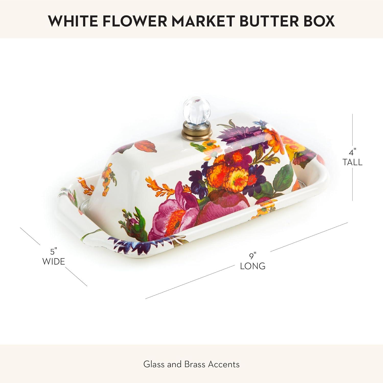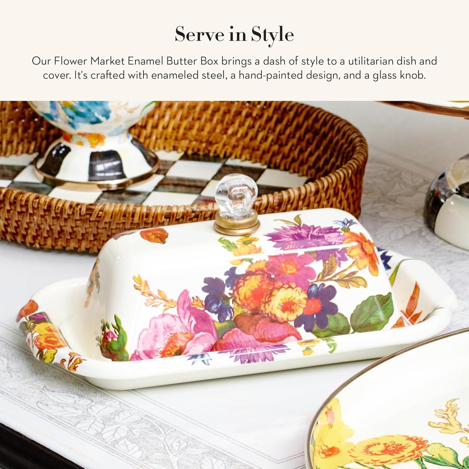 MACKENZIE-CHILDS Enamel Butter Box, Cute Lidded Butter Dish, Black-and-White Courtly Check(White Flower Market)
