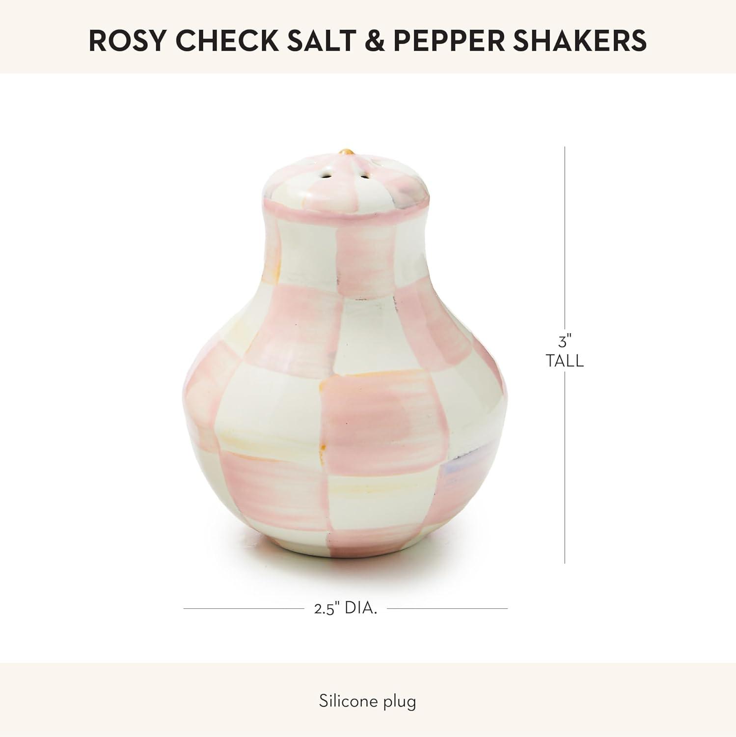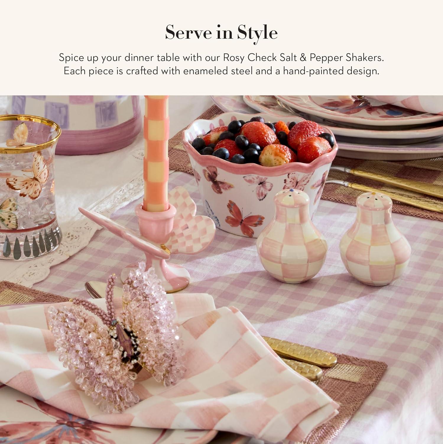 MACKENZIE-CHILDS Enamel Salt and Pepper Shakers, Kitchen Table Spice Shaker Set, Blue-and-White Royal Check, Small(Rosy Check)