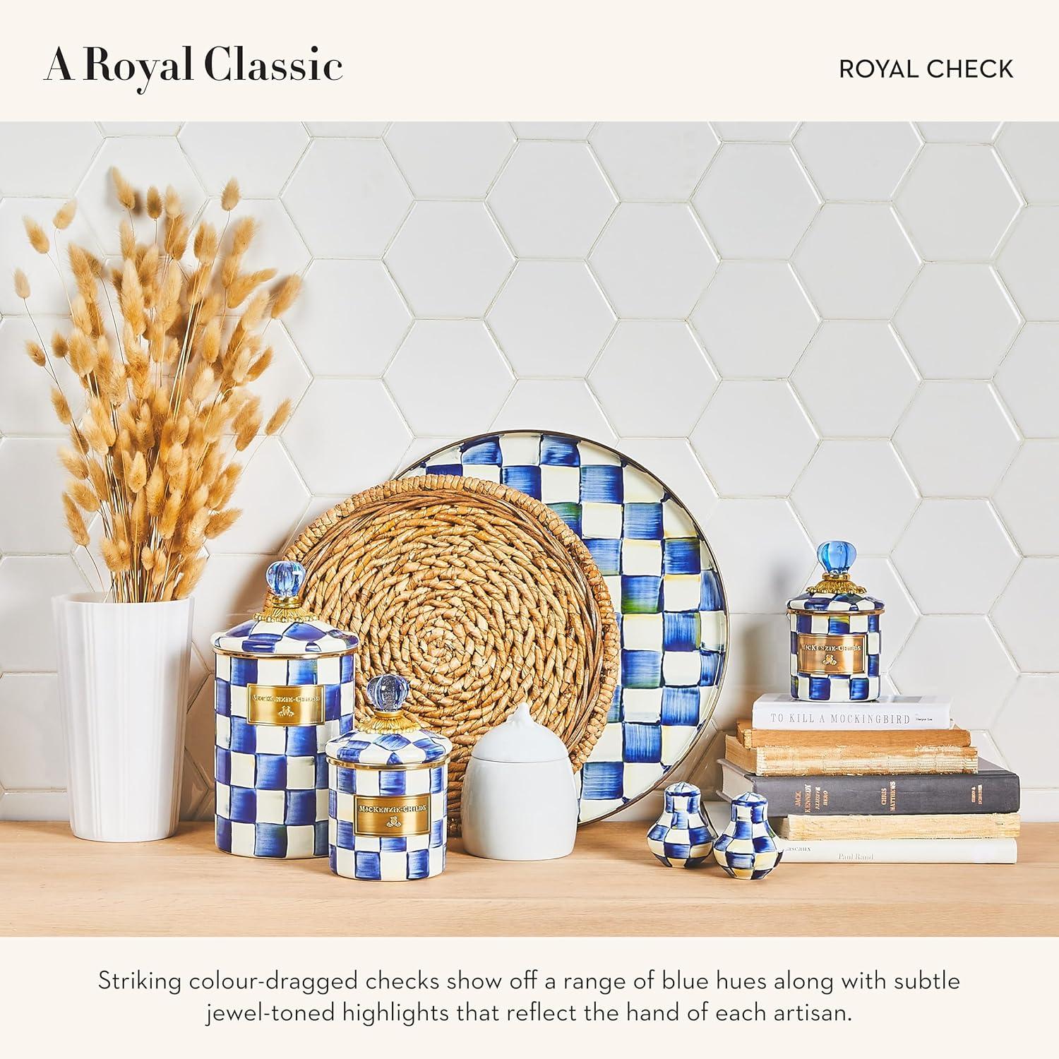 MACKENZIE-CHILDS Enamel Salt and Pepper Shakers, Kitchen Table Spice Shaker Set, Blue-and-White Royal Check, Small(Royal Check)