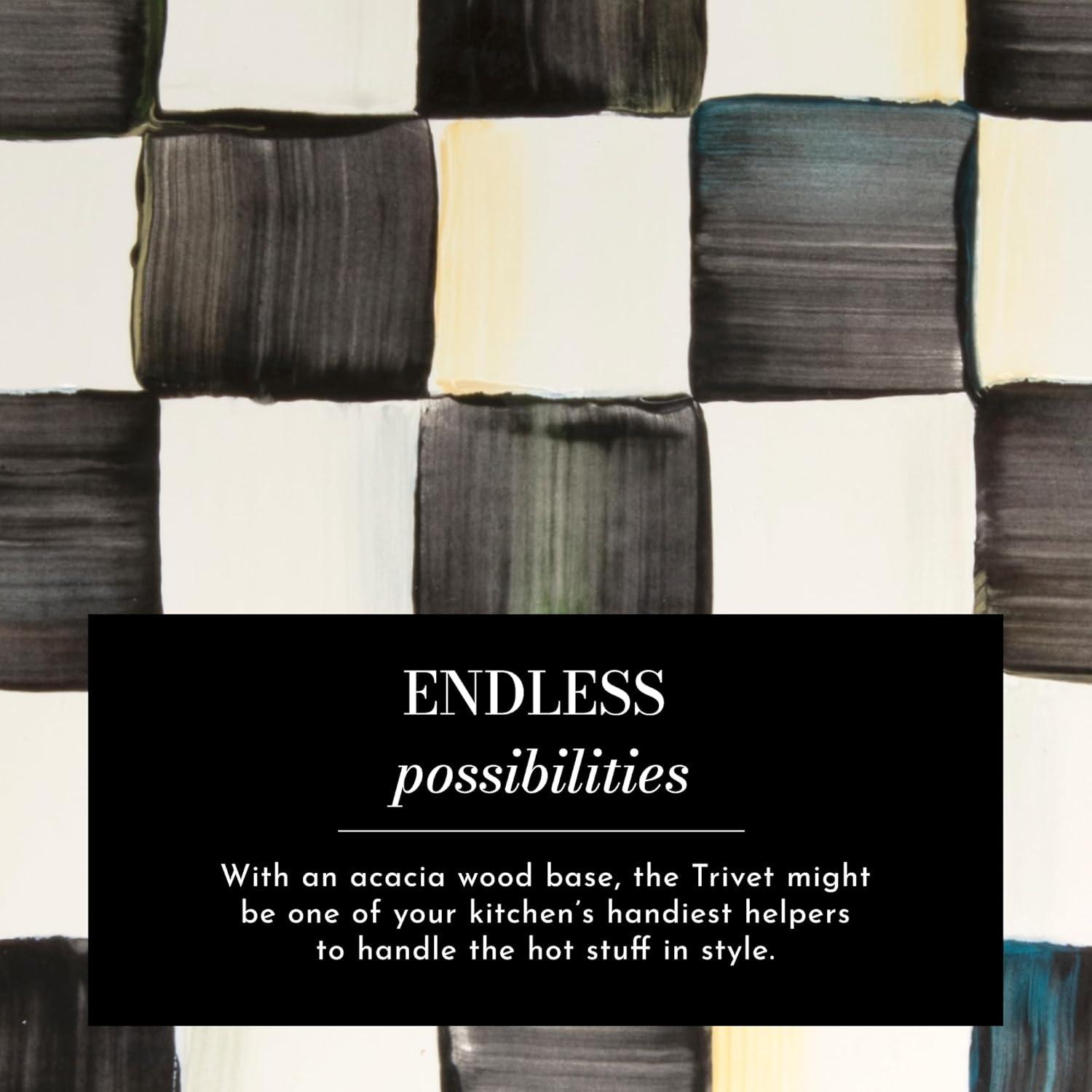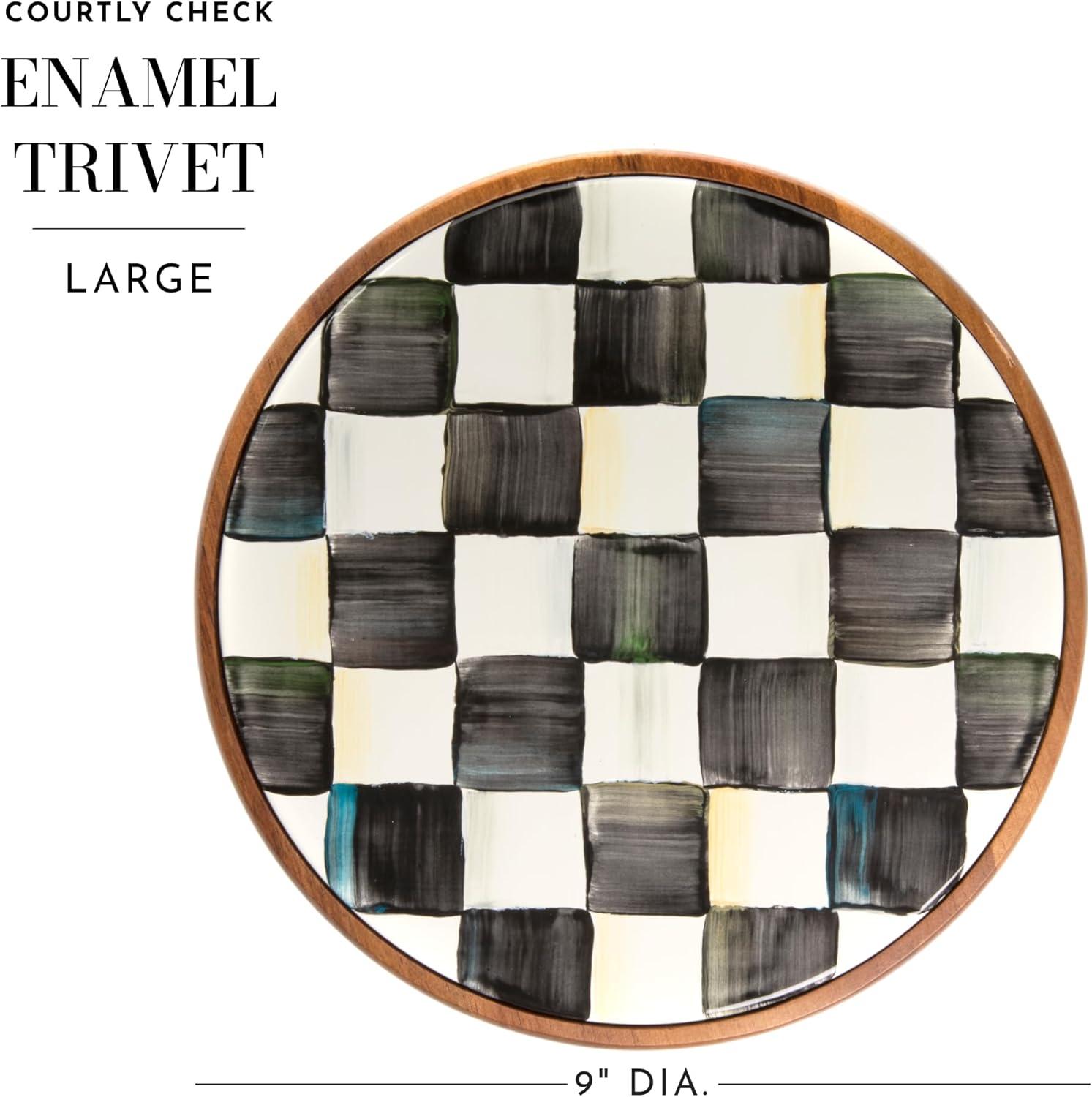 MACKENZIE-CHILDS Enamel Trivet, Heat-Resistant Countertop Protector for Hot Pots or Kettles, Large, Black-and-White Courtly Check(Courtly Check)