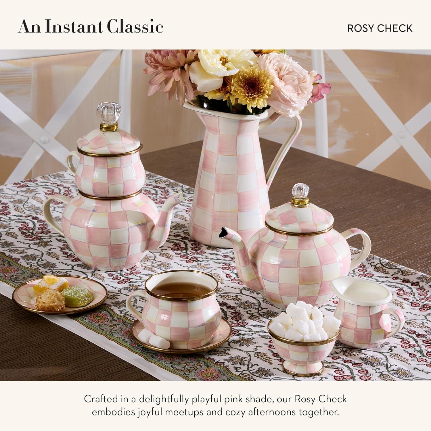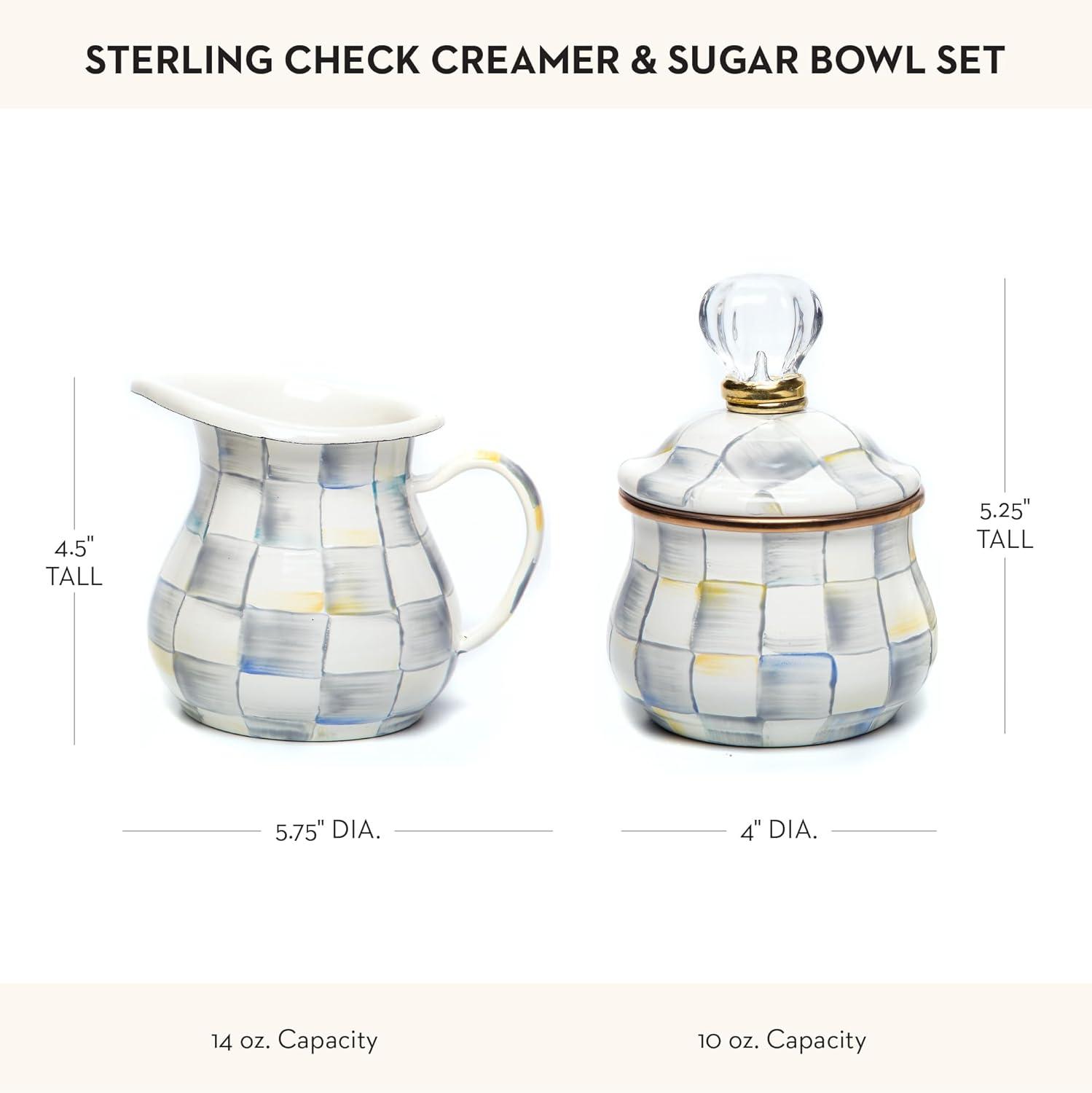 MACKENZIE-CHILDS Enamel Creamer and Sugar-Bowl Set, Cream Dispenser and Sugar Holder, Unique Kitchen Decor, Pink-and-White Rosy Check(Sterling Check)