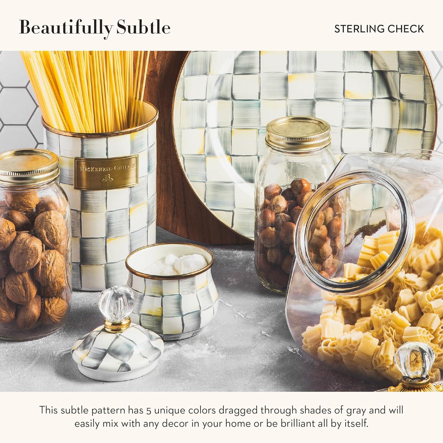 MACKENZIE-CHILDS Enamel Canister Set, Mini (14 oz.), Demi (24 oz.), and Small (38 oz.) Kitchen Containers, White Flower Market