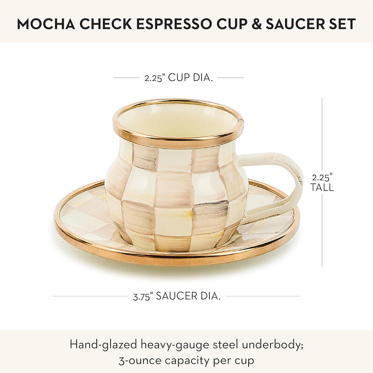 MACKENZIE-CHILDS Enamel Teapot, Cute Small Teapot with Lid, 4-Cup Capacity, Black-and-White Courtly Check(Mocha Check)