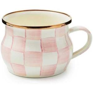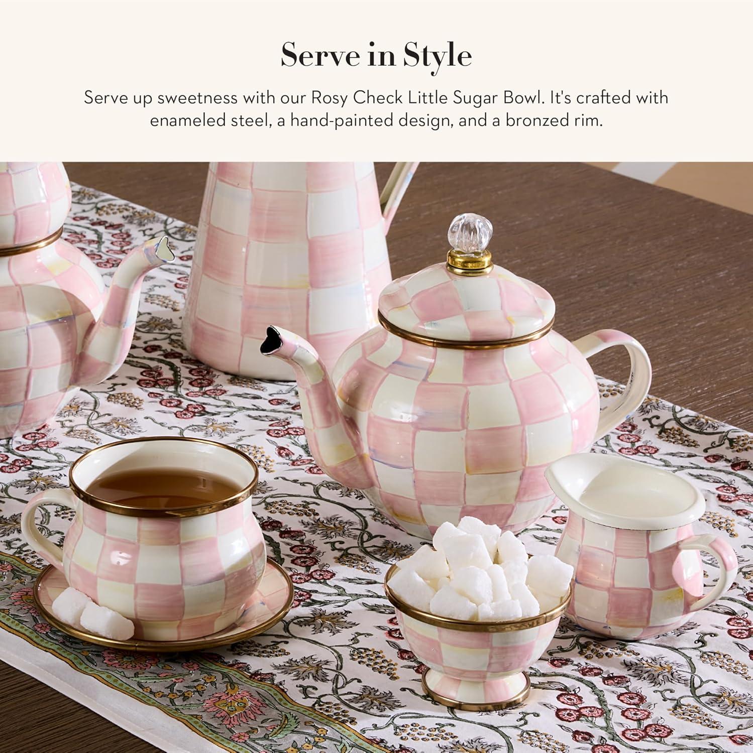 MACKENZIE-CHILDS Enamel Little Sugar Bowl, Small Sugar Container, 4 Ounces, Pink-and-White Rosy Check(Rosy Check)