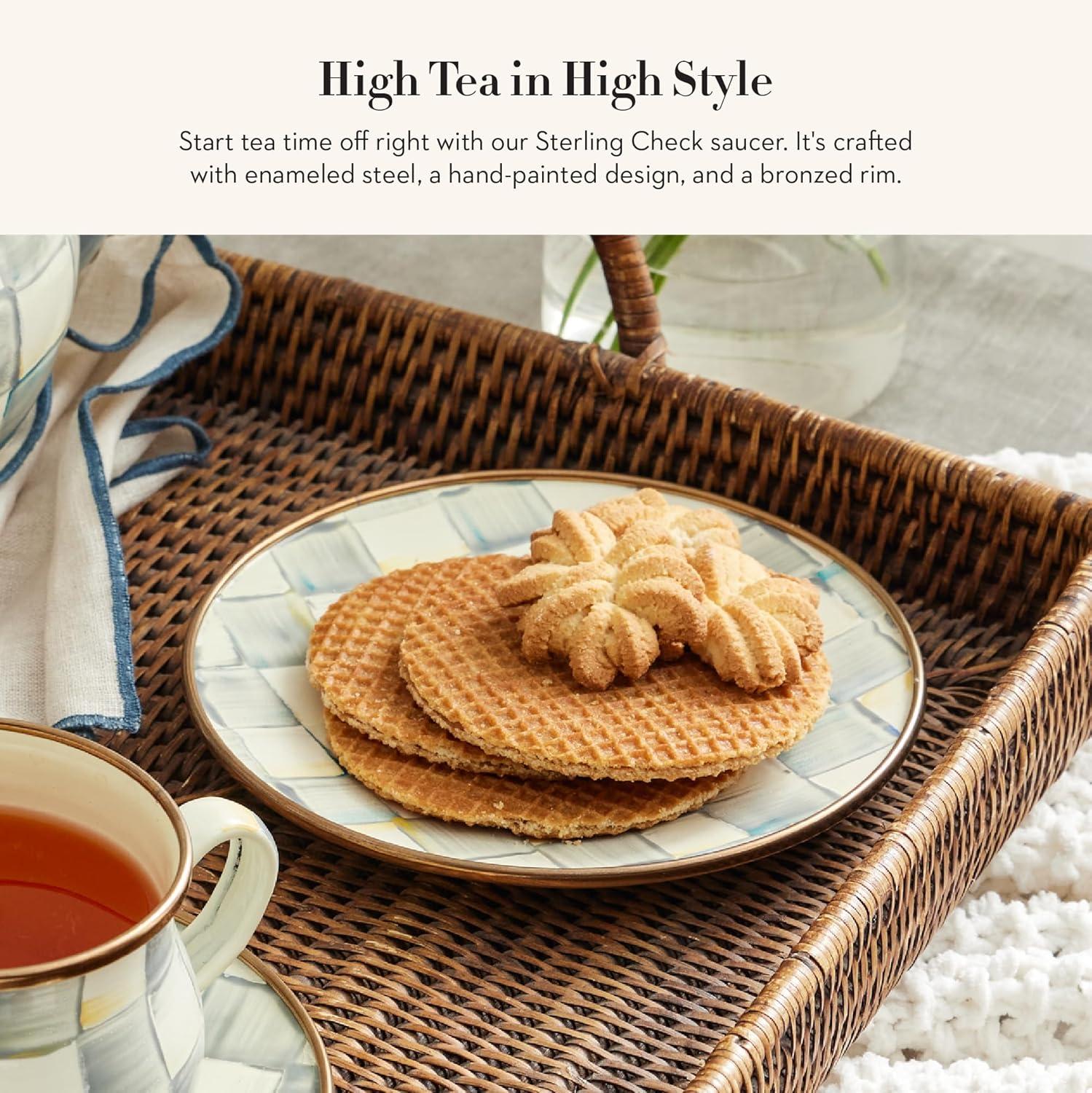 MACKENZIE-CHILDS Enamel Whistling Tea Kettle, Decorative Teapot for Stovetop, Black-and-White Courtly Check(Sterling Check)