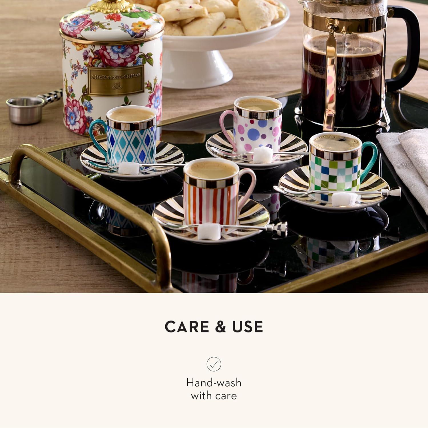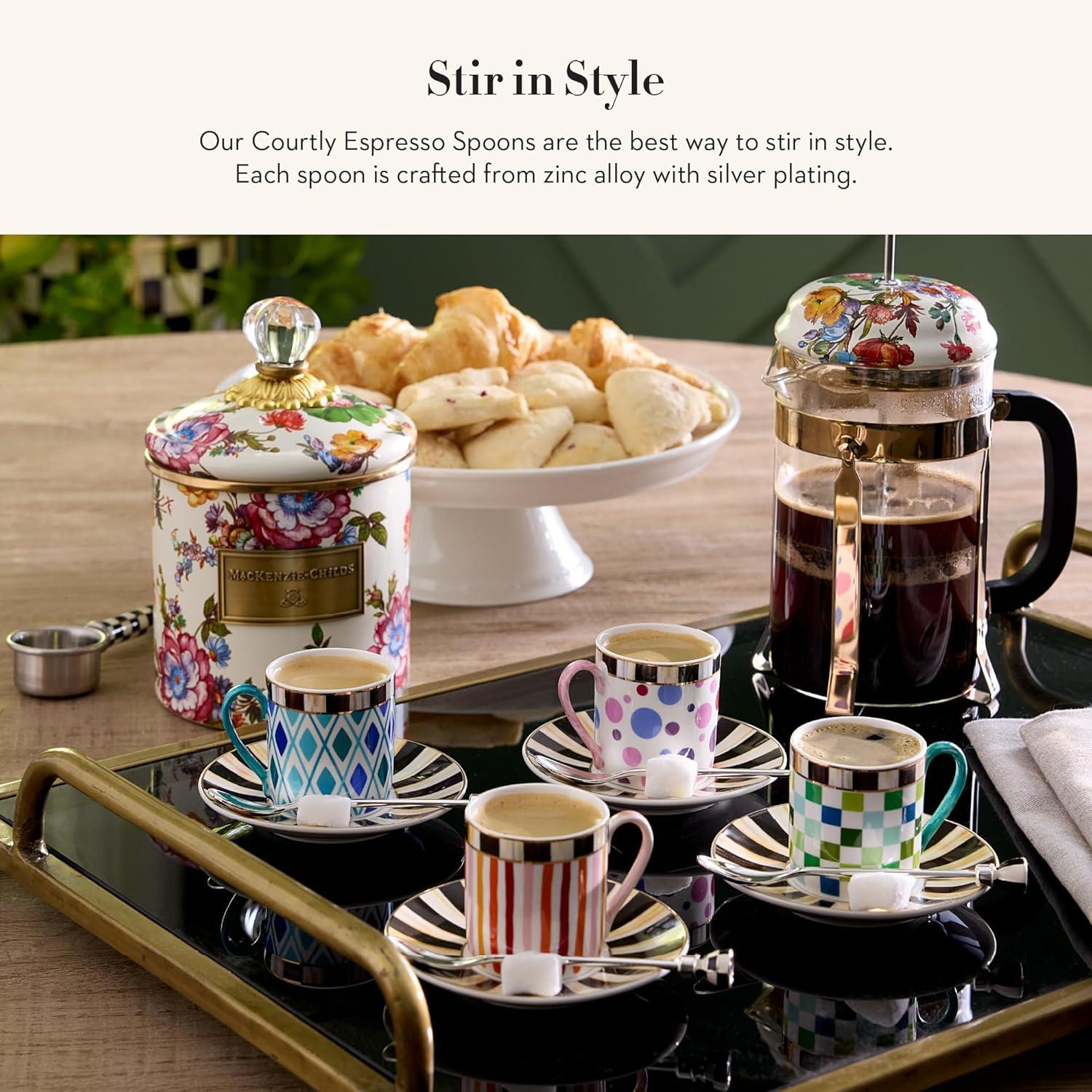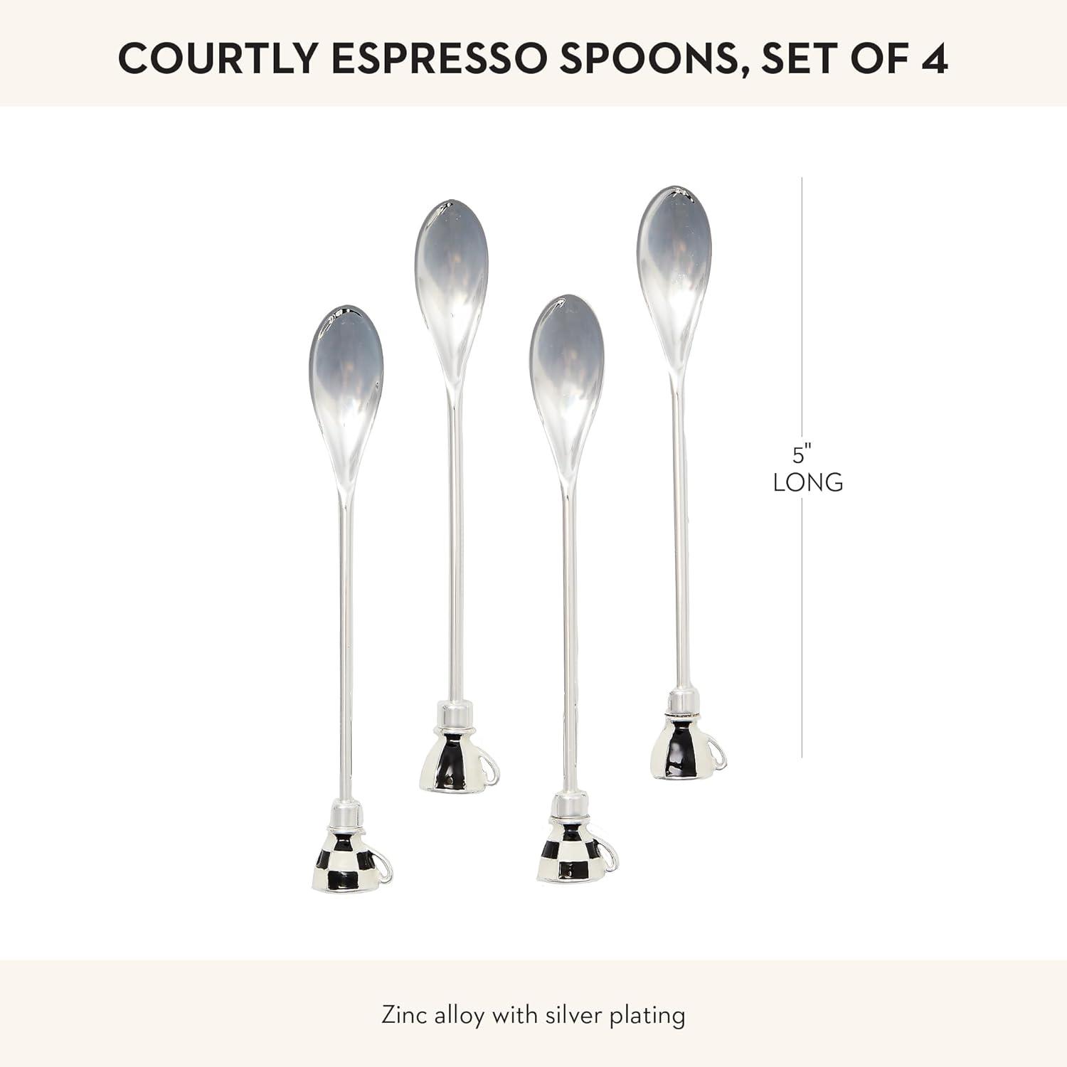 MACKENZIE-CHILDS Espresso Spoon Set, Cute Coffee Spoons and Teaspoons, Set of 4, Black-and-White Courtly