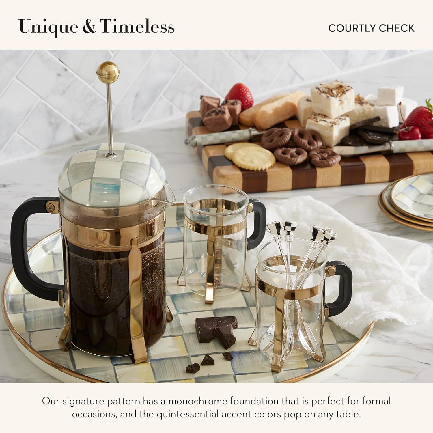 MACKENZIE-CHILDS Electric Kettle, Stainless-Steel Tea Kettle, Black-and-White Courtly Check(Courtly Check)