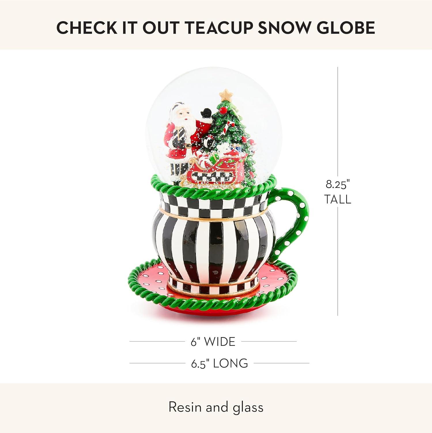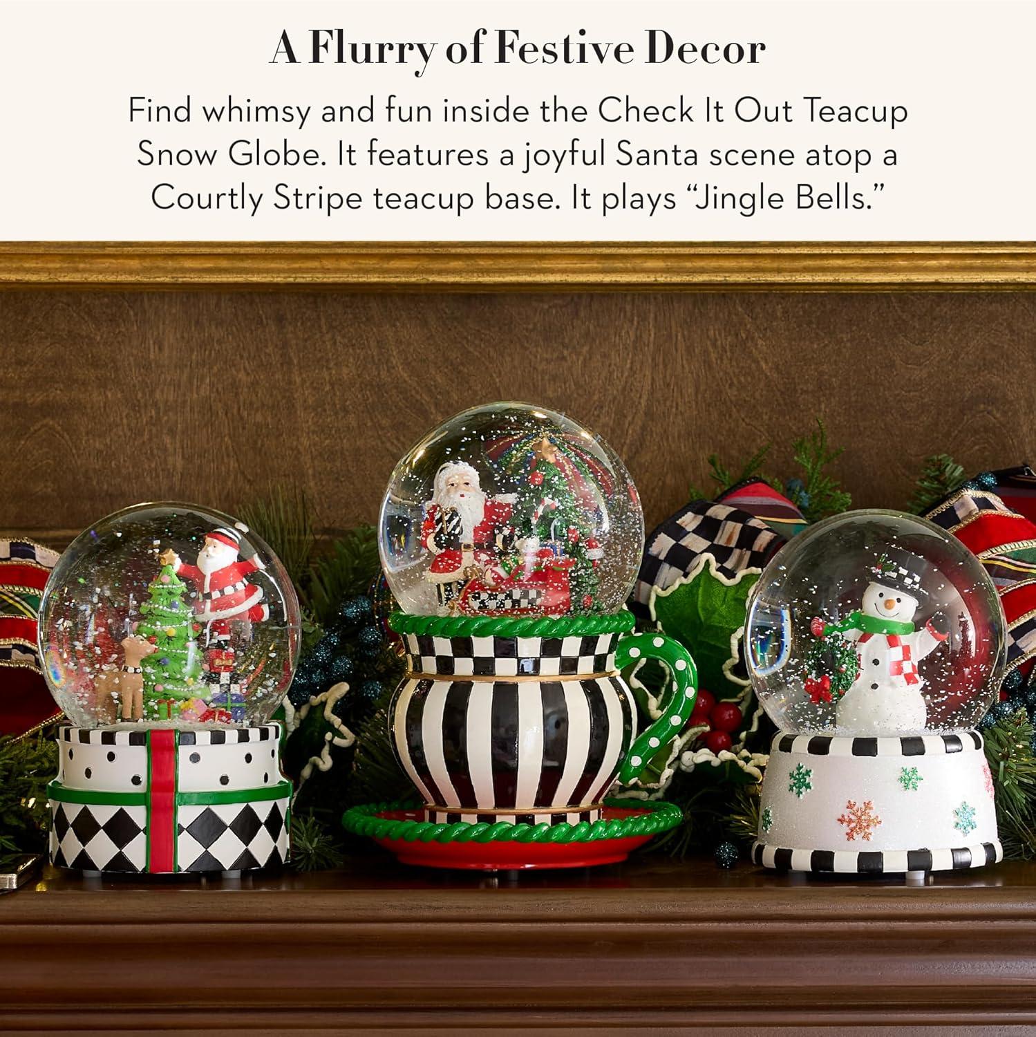 MACKENZIE CHILDS Snow Globe, Christmas Decor for Living Room, Holly Bear(Check It Out Teacup)