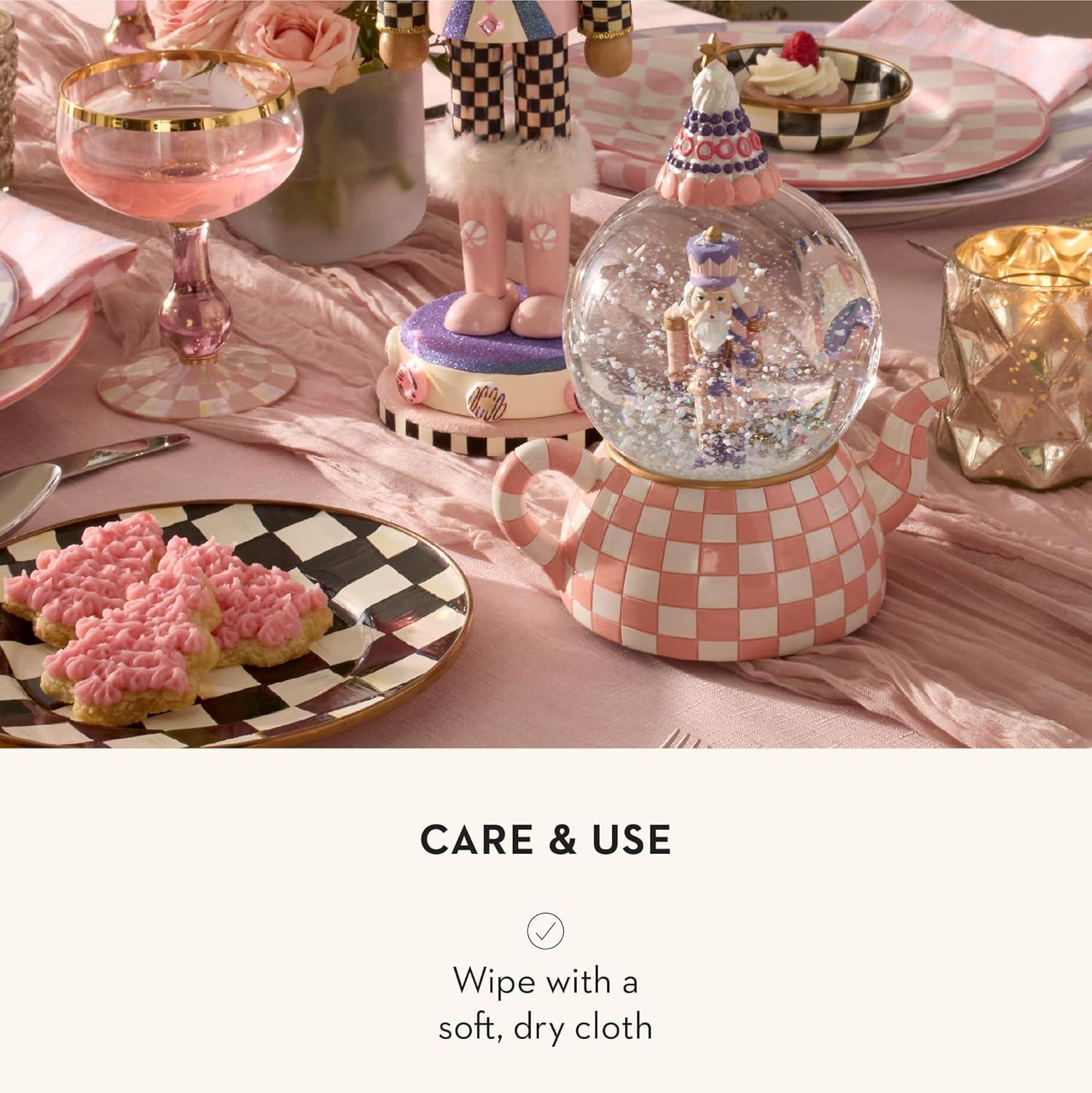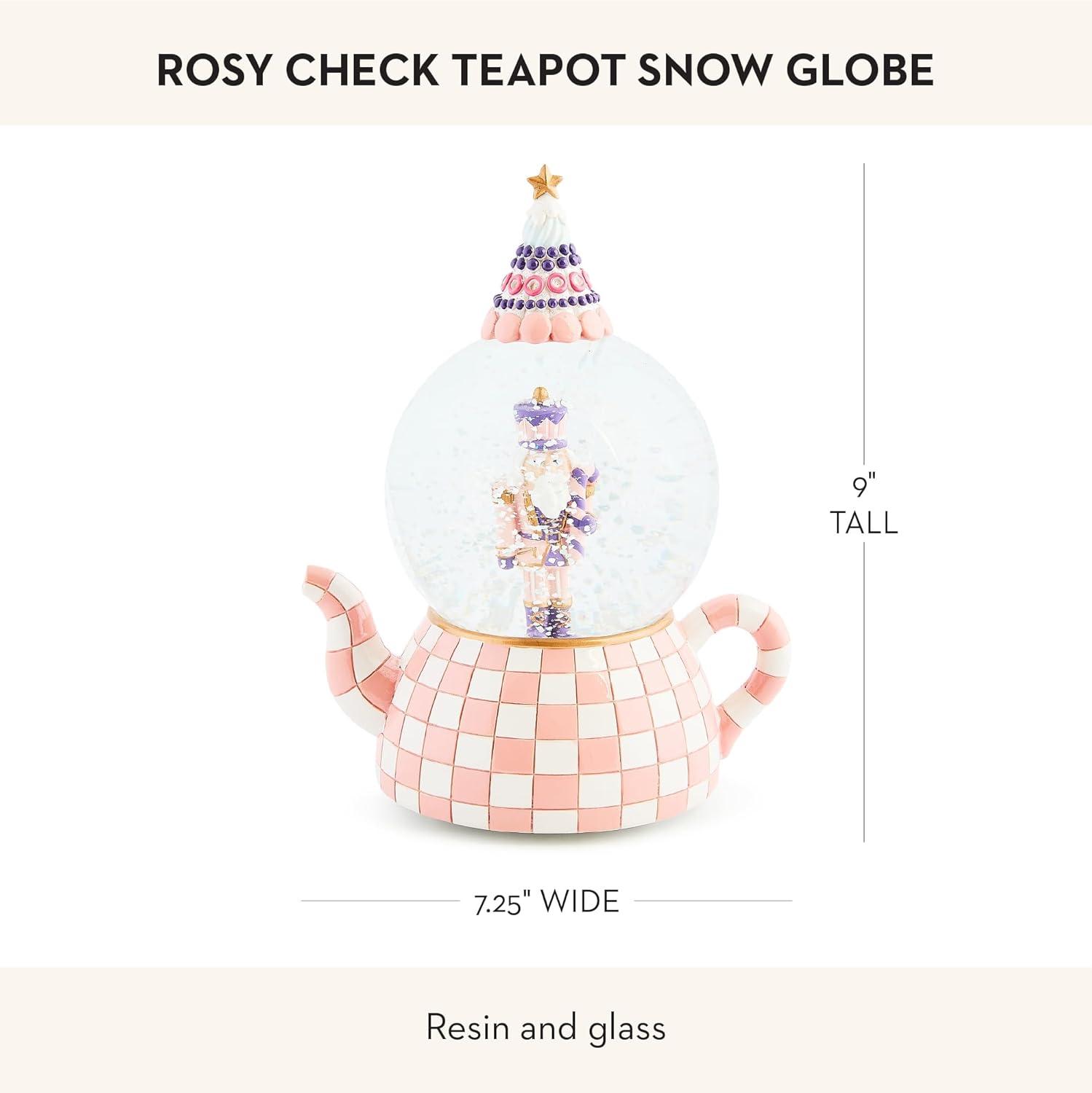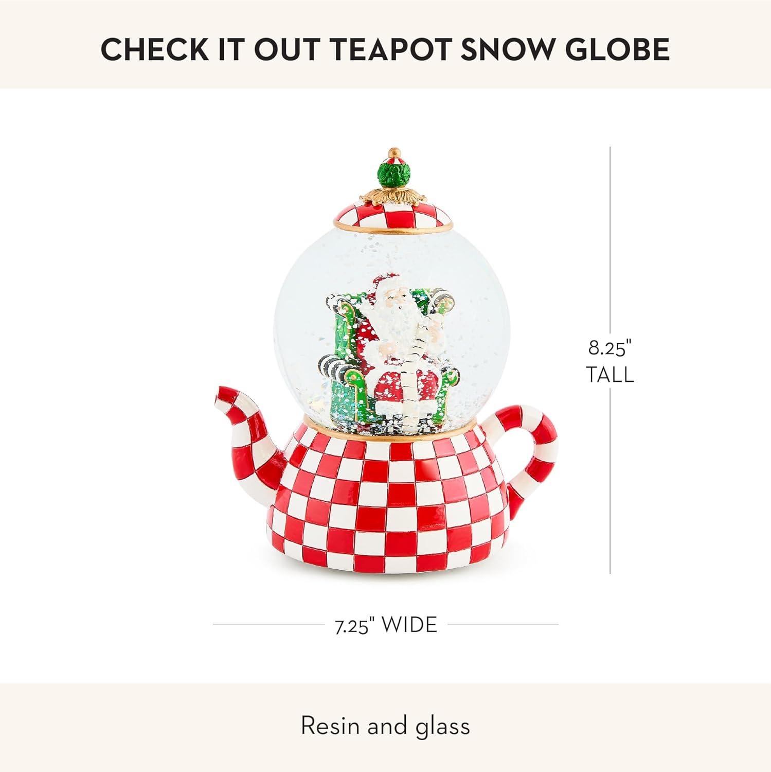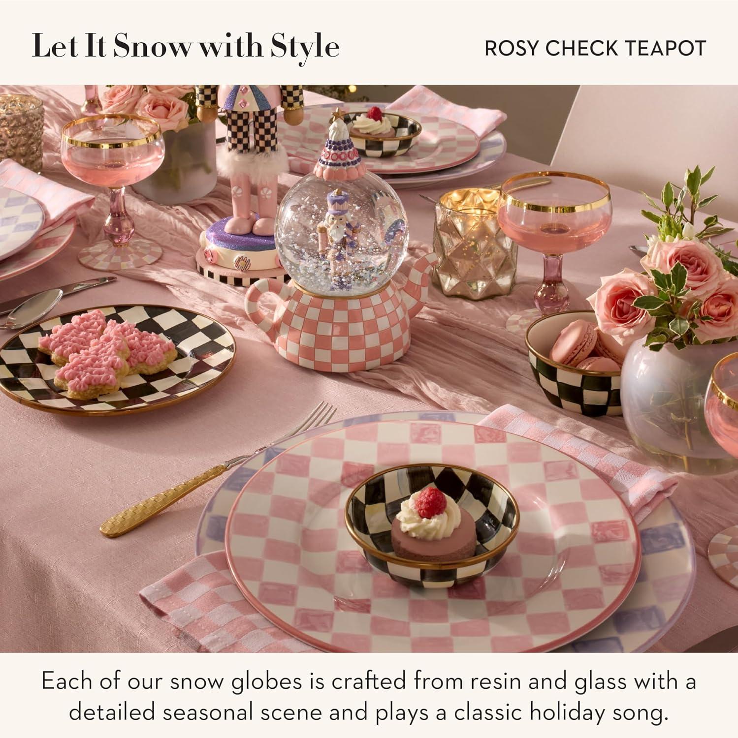 MACKENZIE CHILDS Snow Globe, Christmas Decor for Living Room, Holly Bear(Rosy Check Teapot)