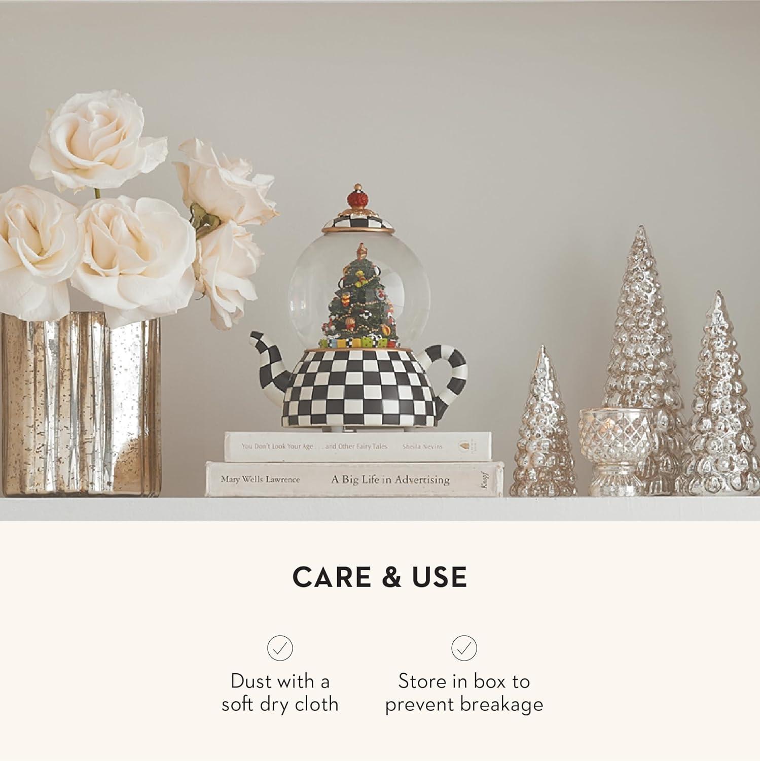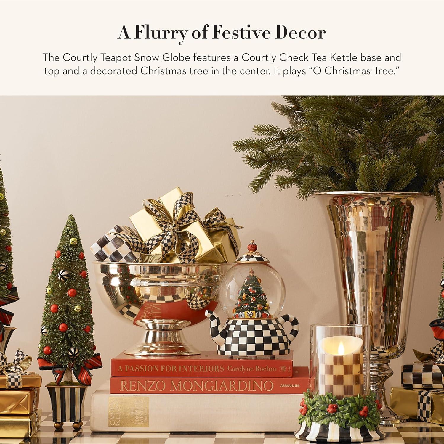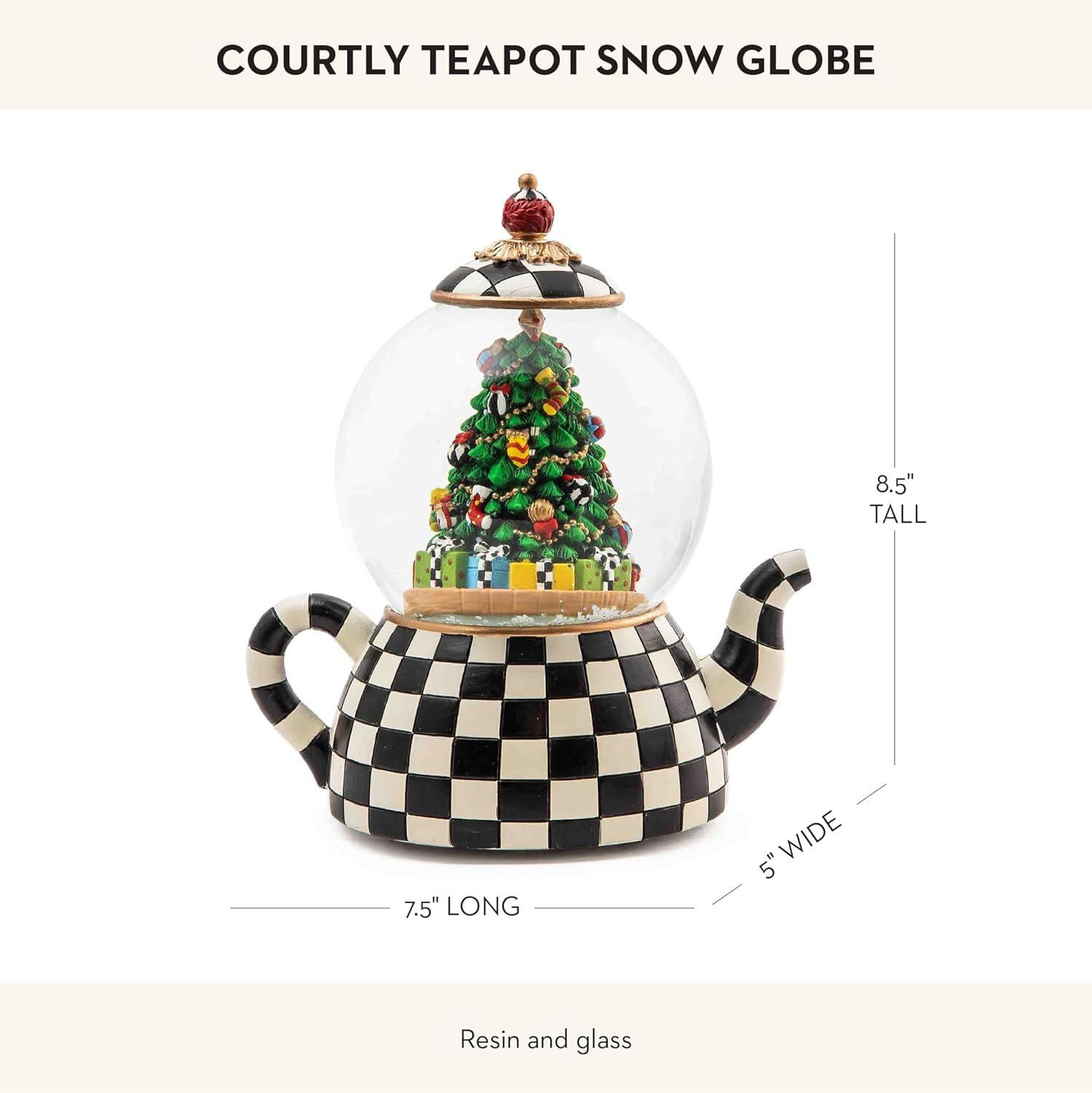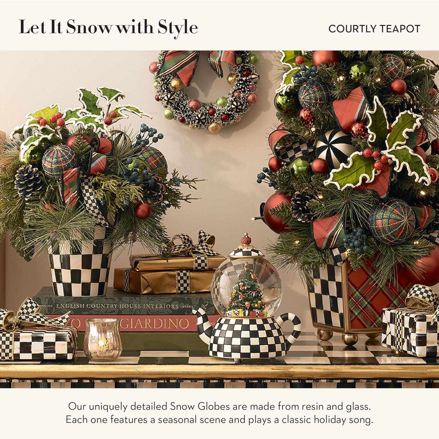 MACKENZIE CHILDS Snow Globe, Christmas Decor for Living Room, Holly Bear(Courtly Teapot)