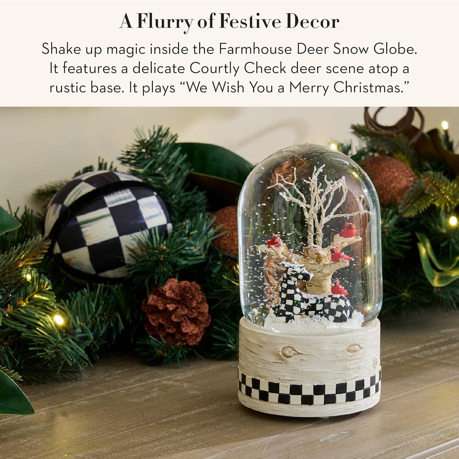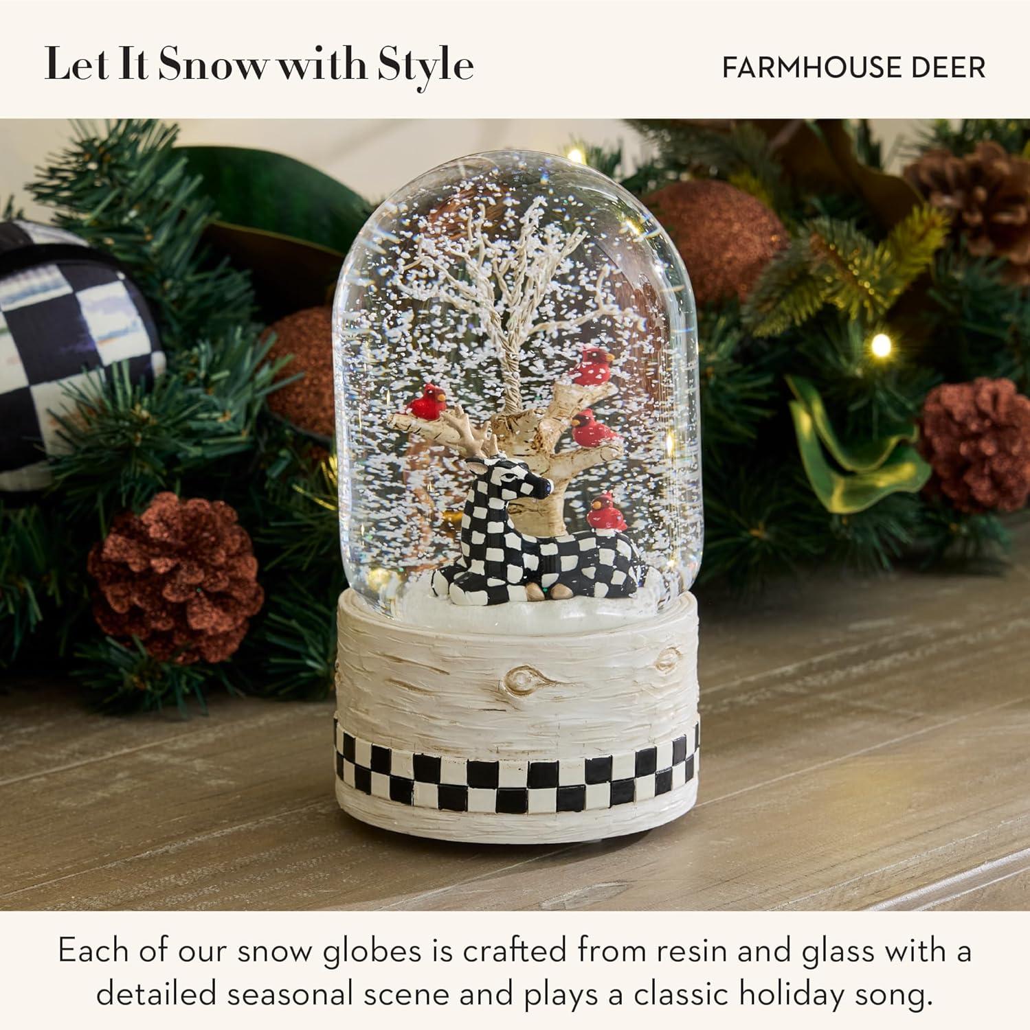 MACKENZIE CHILDS Snow Globe, Christmas Decor for Living Room, Holly Bear(Farmhouse Deer)