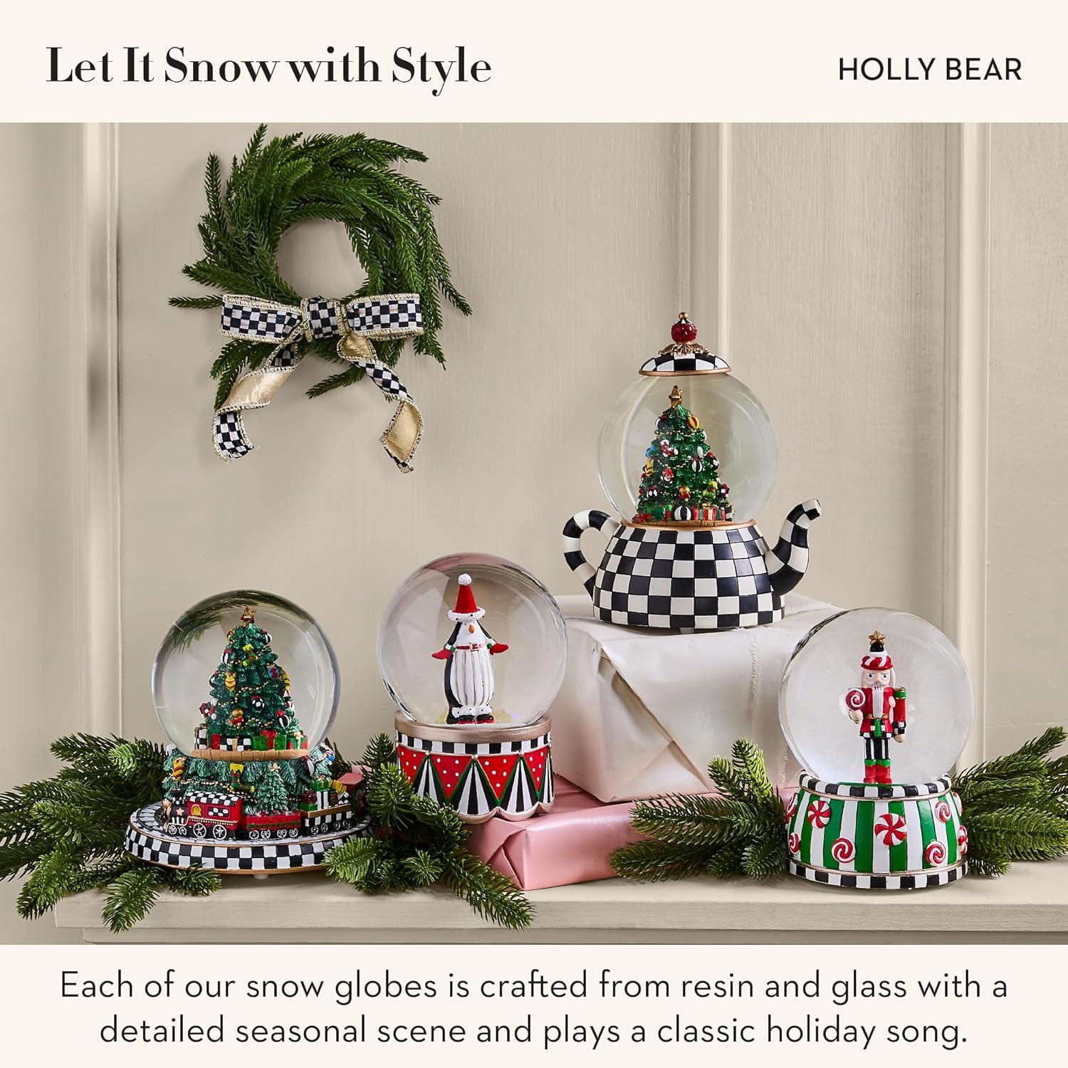 MACKENZIE CHILDS Snow Globe, Christmas Decor for Living Room, Holly Bear(Check It Out Teapot)