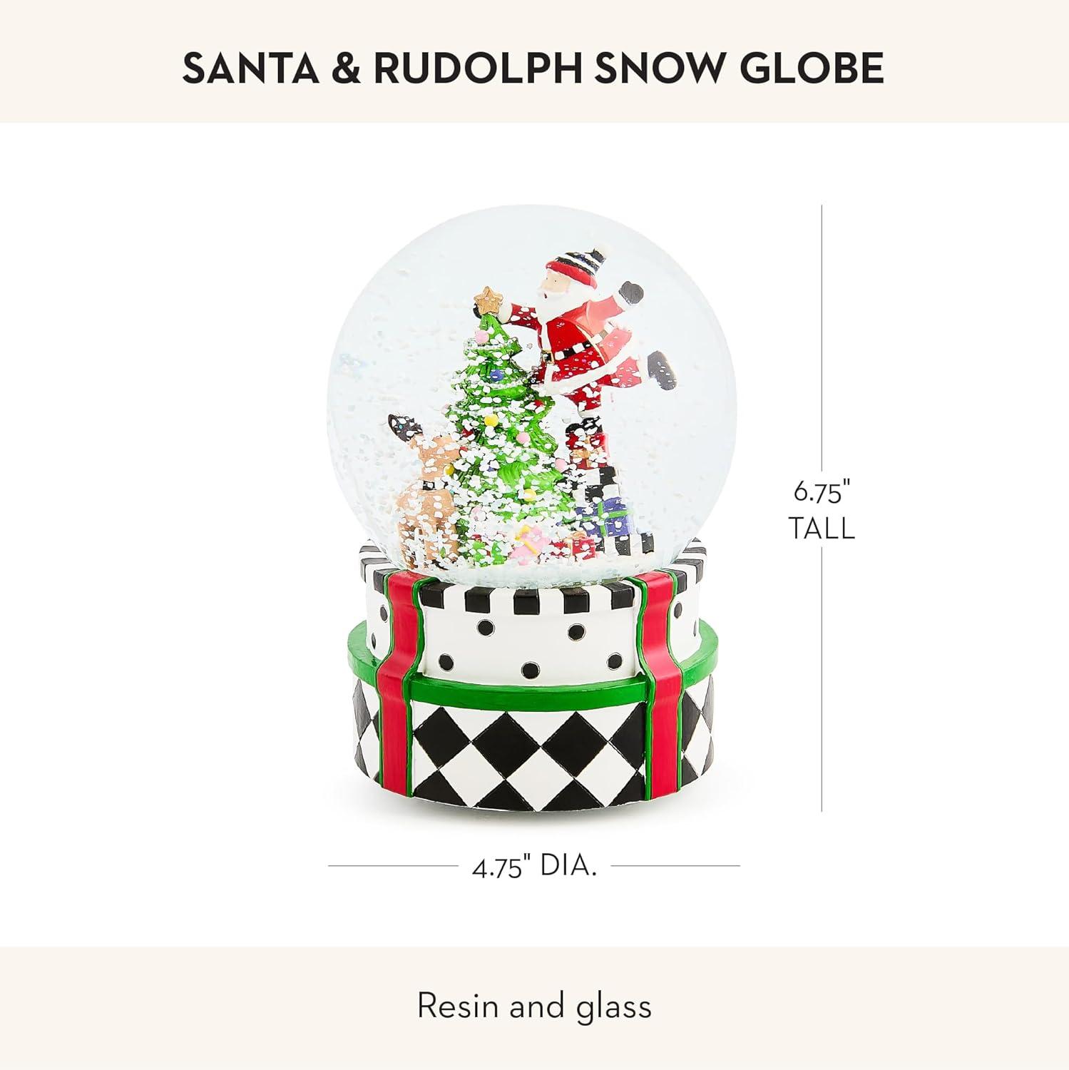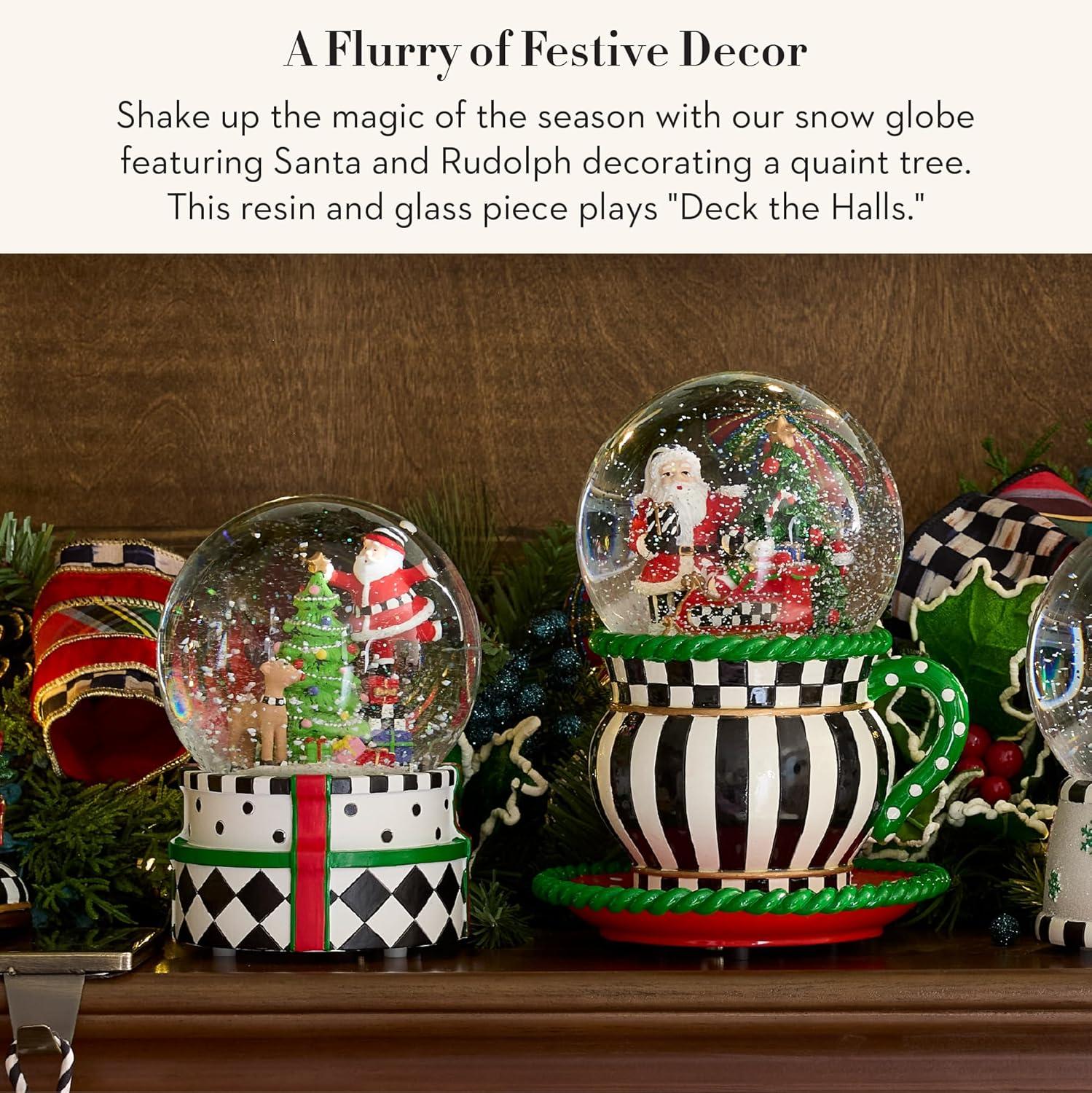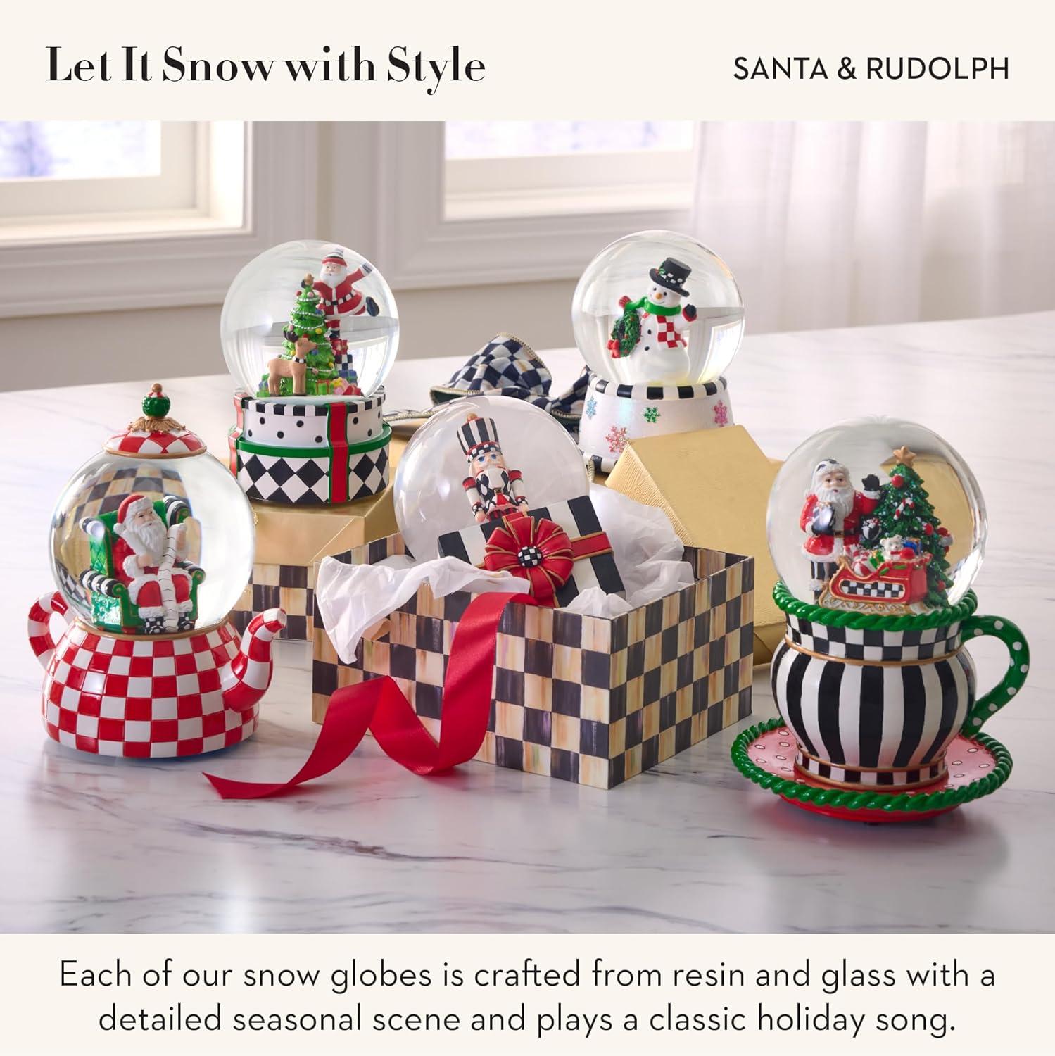 MACKENZIE CHILDS Snow Globe, Christmas Decor for Living Room, Holly Bear(Santa & Rudolph)