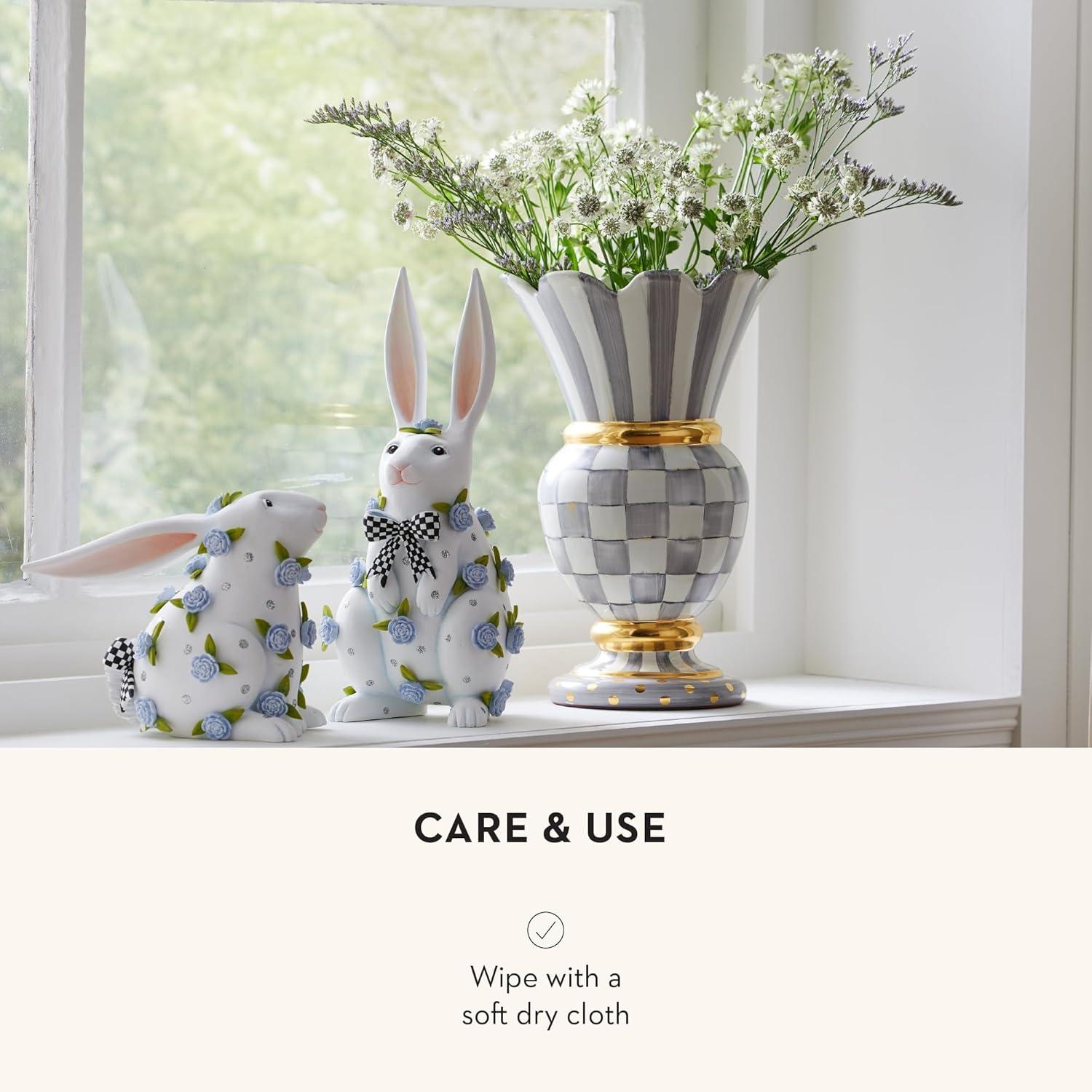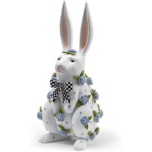 MACKENZIE-CHILDS Patience Brewster Periwinkle Peony Rabbit Figurine, Spring Rabbit Decor, Standing
