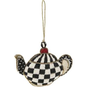MACKENZIE-CHILDS Beaded Ornament, Christmas Tree Ornament, Courtly Check Teapot