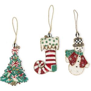 MACKENZIE-CHILDS Beaded Ornament, Christmas Tree Ornament, Set of 3, Cozy Holiday