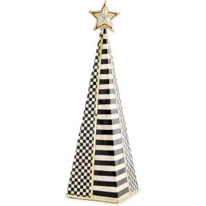 MACKENZIE-CHILDS Capiz Tabletop Tree Figure, Christmas Decoration and Holiday Decor, Black-and-White Checks and Stripes, Courtly Noel