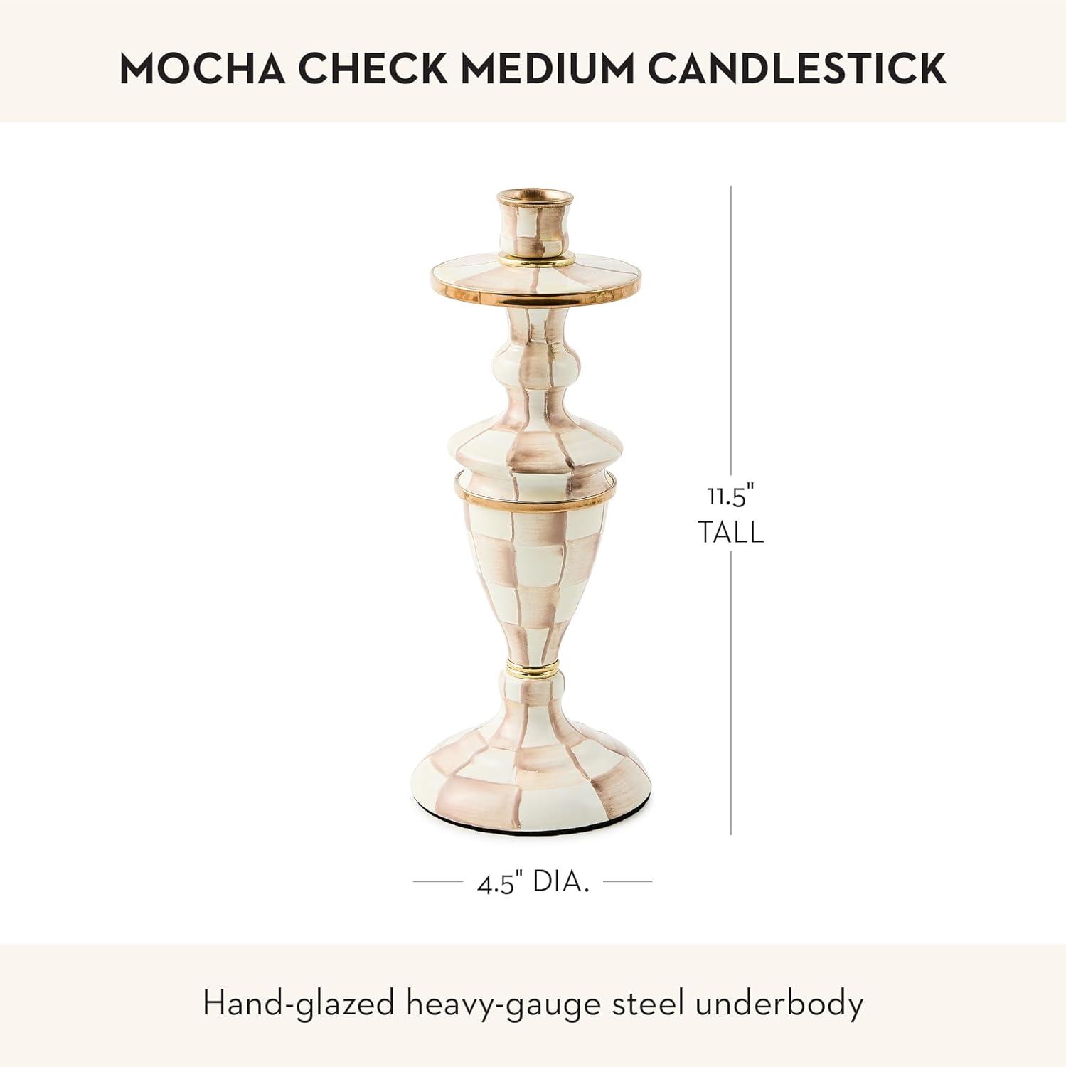 MACKENZIE-CHILDS Enamel Candlestick, Cute Candle-Holder Decor, Short, Brown-and-White Mocha Check(Mocha Check)