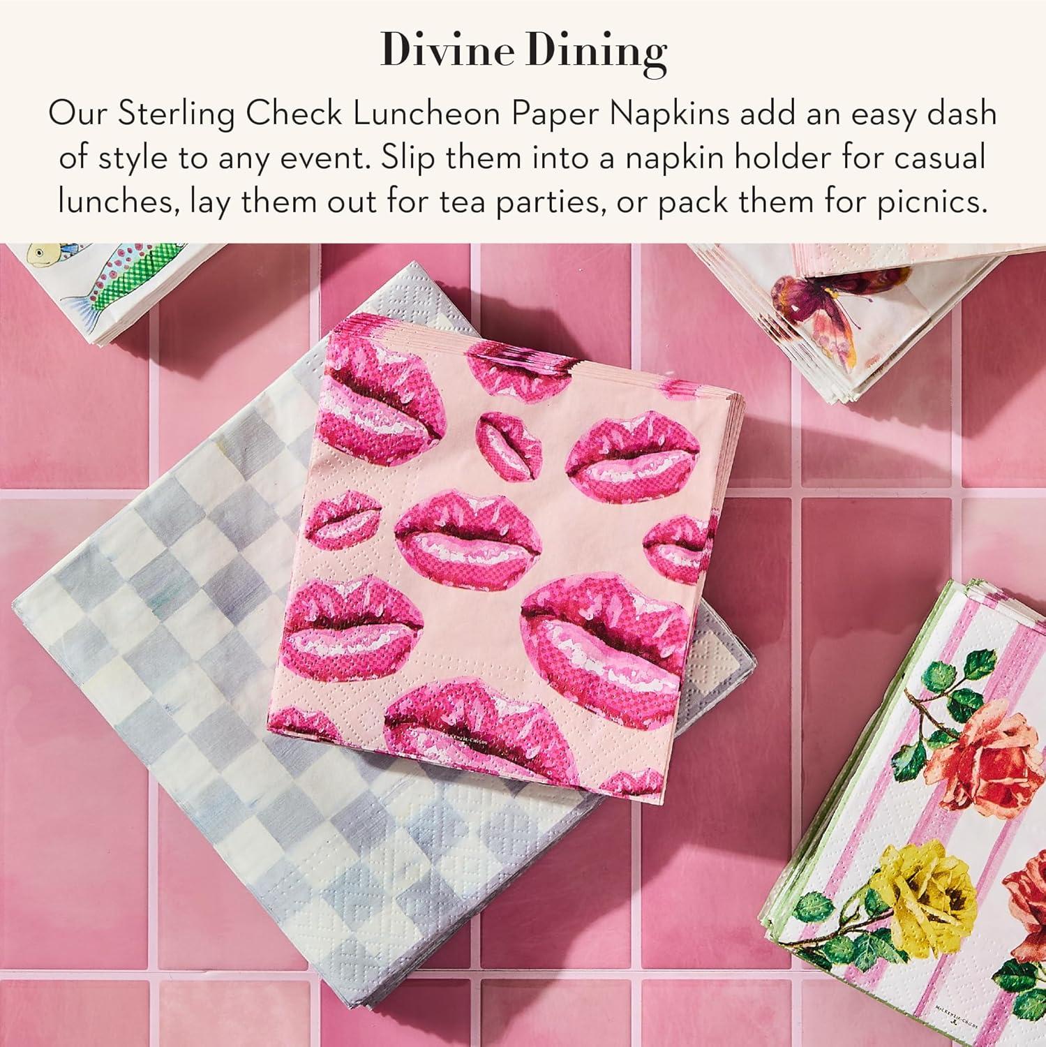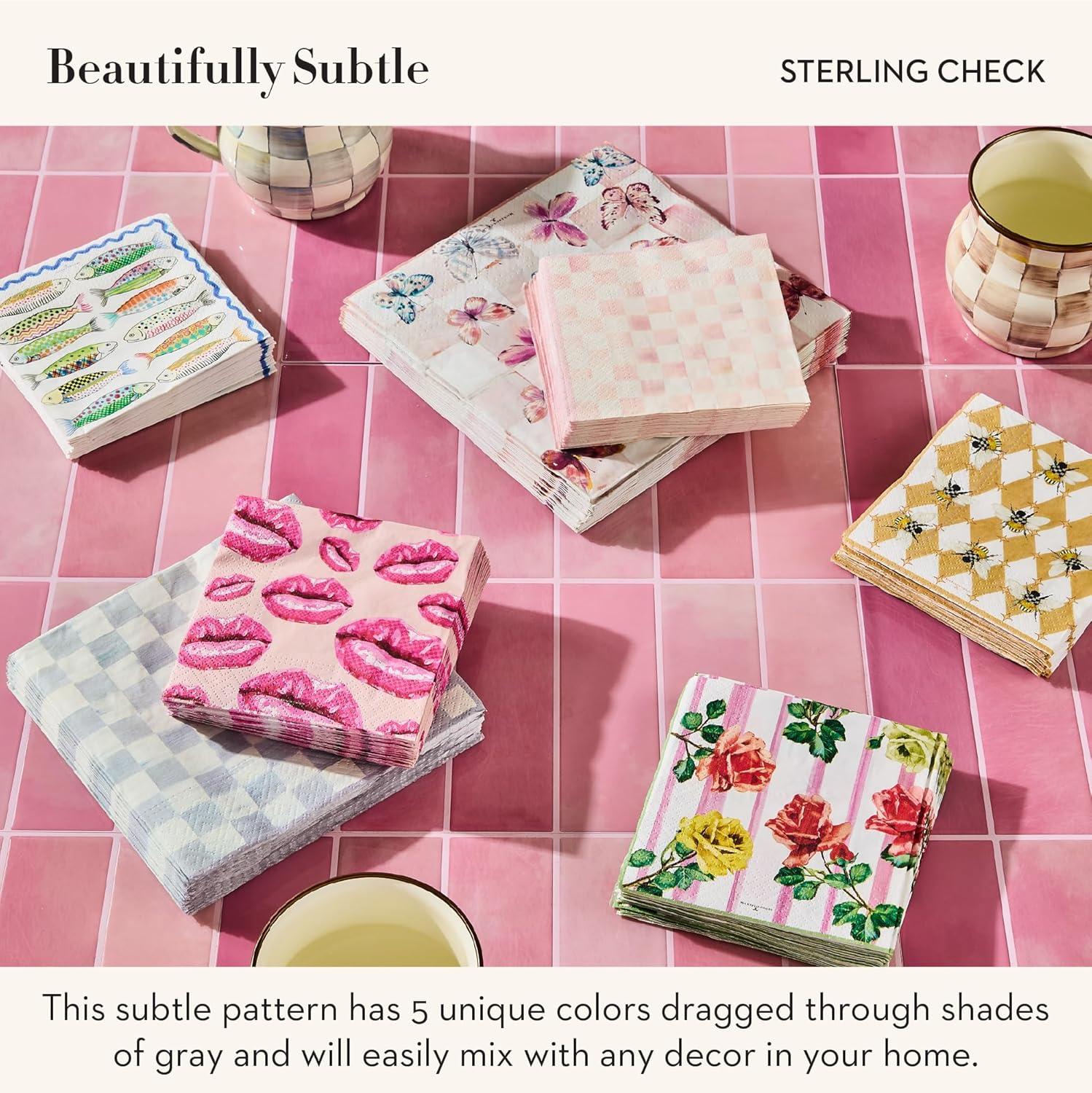 MACKENZIE-CHILDS Luncheon Paper Napkins, Stylish Paper Luncheon Napkins, Pink-and-White Rosy Check(Sterling Check)