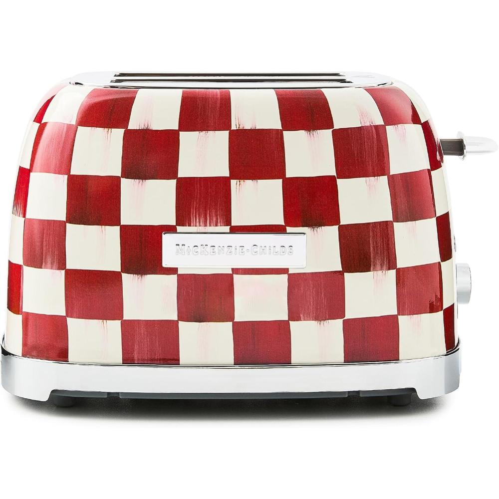 MACKENZIE-CHILDS 2-Slice Toaster, Decorative Toaster for Kitchen, Black-and-White Courtly Check(Cherry Check)