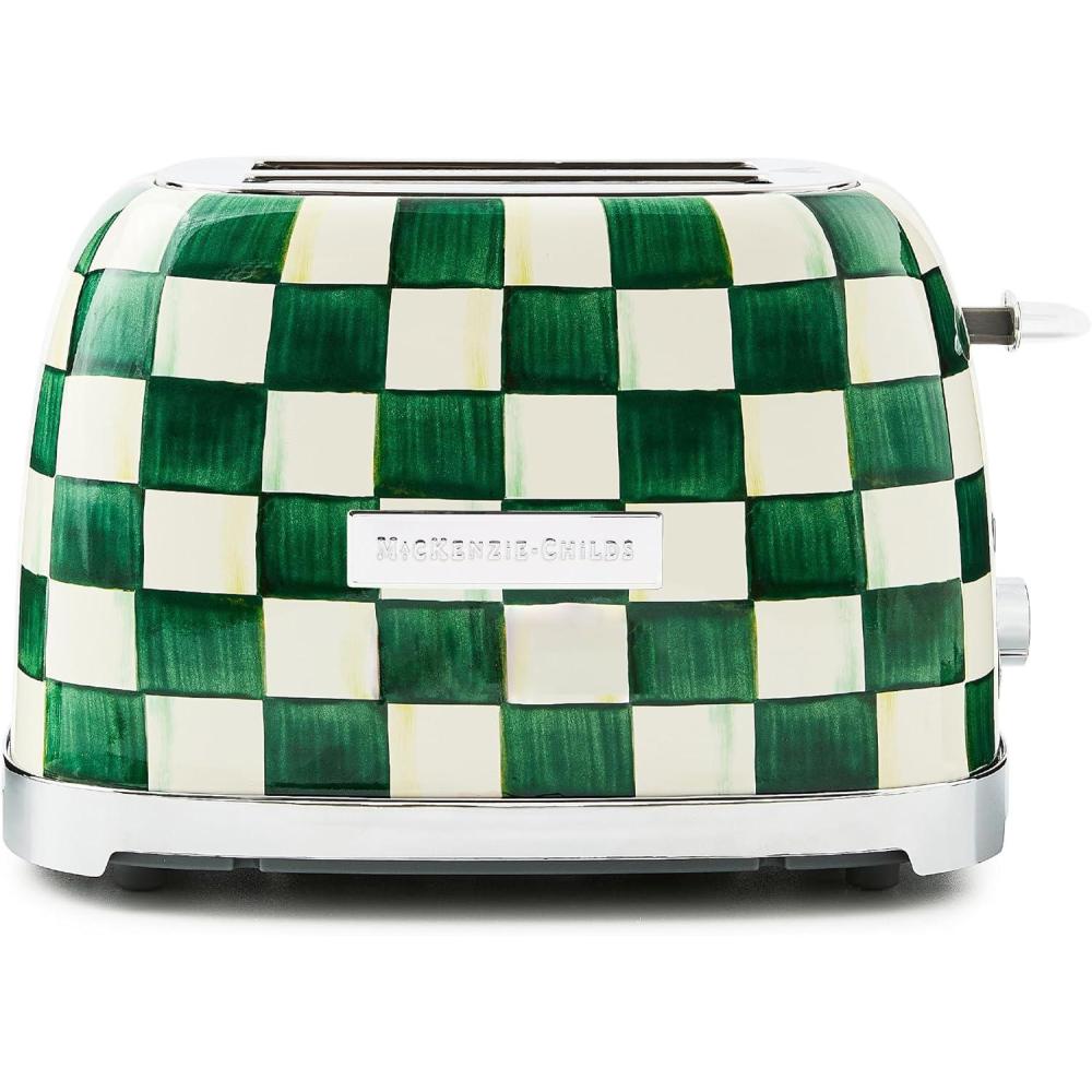 MACKENZIE-CHILDS 2-Slice Toaster, Decorative Toaster for Kitchen, Black-and-White Courtly Check(Emerald Check)