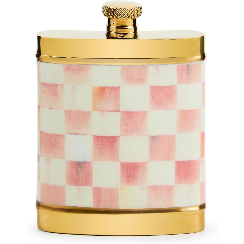 MACKENZIE-CHILDS 3260 Flask, Cute Stainless-Steel Flask, 6 Ounces, Black-and-White Courtly Check(Rosy Check)