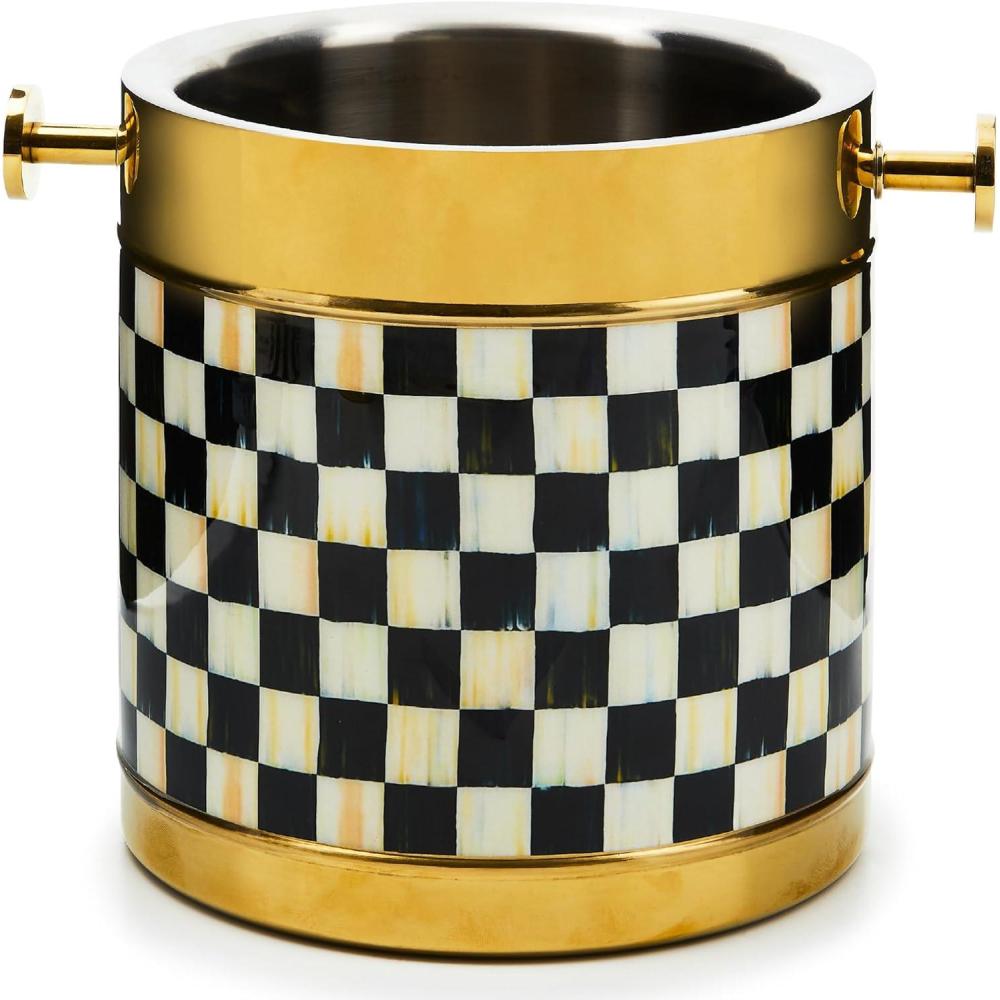 MACKENZIE-CHILDS 3260 Ice Bucket, Decorative Stainless-Steel Bucket and Ice-Cube Bin, Black-and-White Courtly Check(Courtly Check Gold)