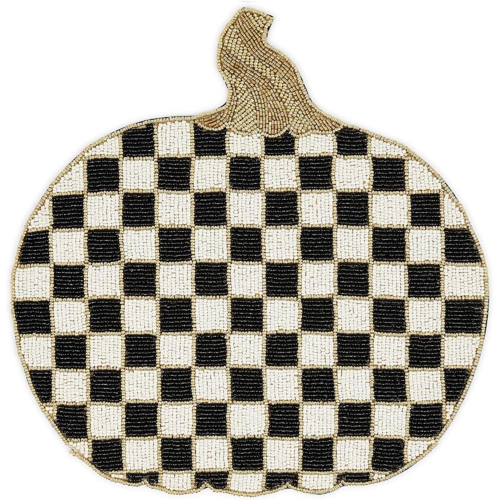 MACKENZIE-CHILDS Beaded Placemat, Indoor Table Mat, Black-and-White Posie(Courtly Check Pumpkin)