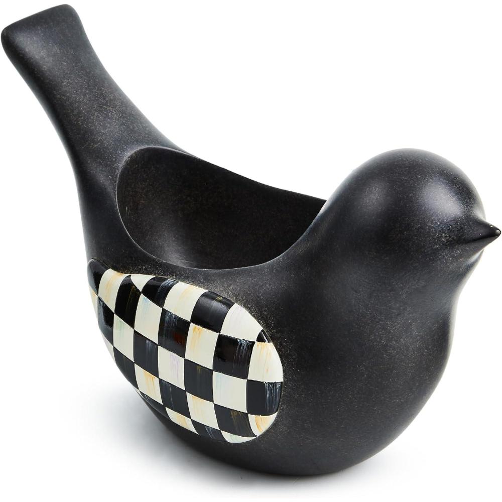 MACKENZIE-CHILDS Birdy Planter, Decorative Garden Planter, Black-and-White Courtly Check