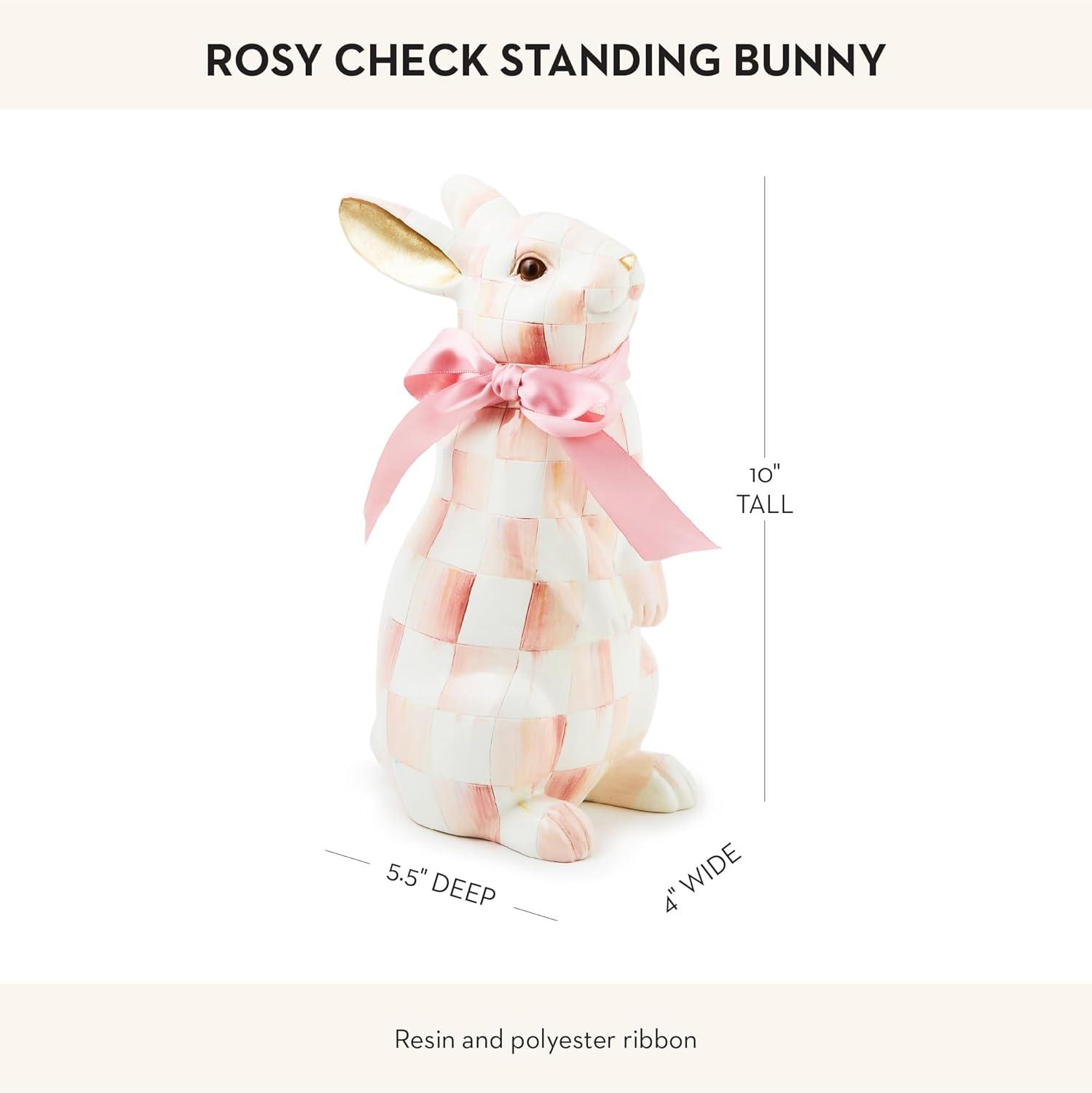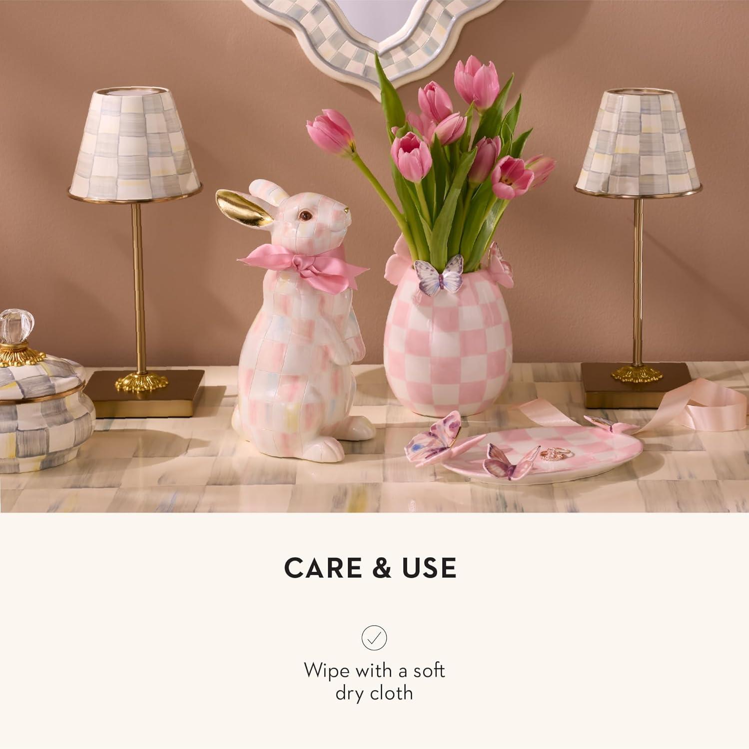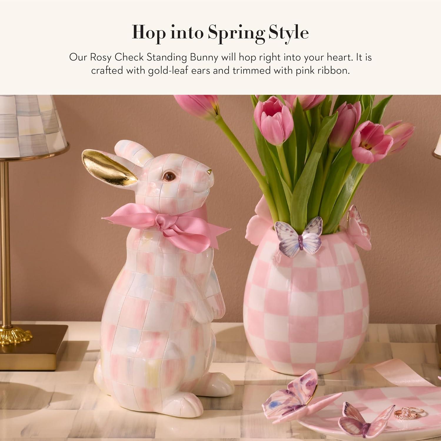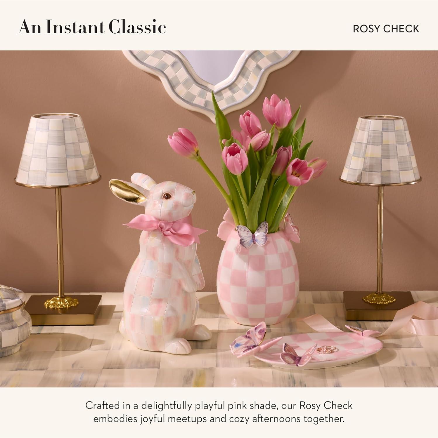 MACKENZIE-CHILDS Bunny Figurine, Rabbit Figurine Decoration for Spring, Resting Royal Check(Rosy Check)
