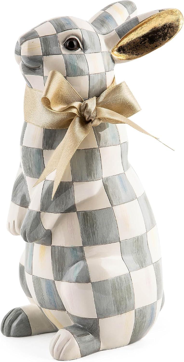 MACKENZIE-CHILDS Bunny Figurine, Rabbit Figurine Decoration for Spring, Resting Royal Check(Sterling Check)