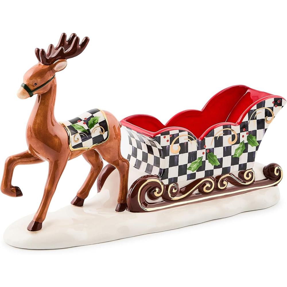 ELEGANT HOLIDAY ESSENTIALS: Our Holly Deer Sleigh Ceramic Candy Dish can be your fun decor bowl! The classic black-and-white Courtly Check accents mesh with the Christmas colors and reindeer figure to create a gorgeous centerpiece.