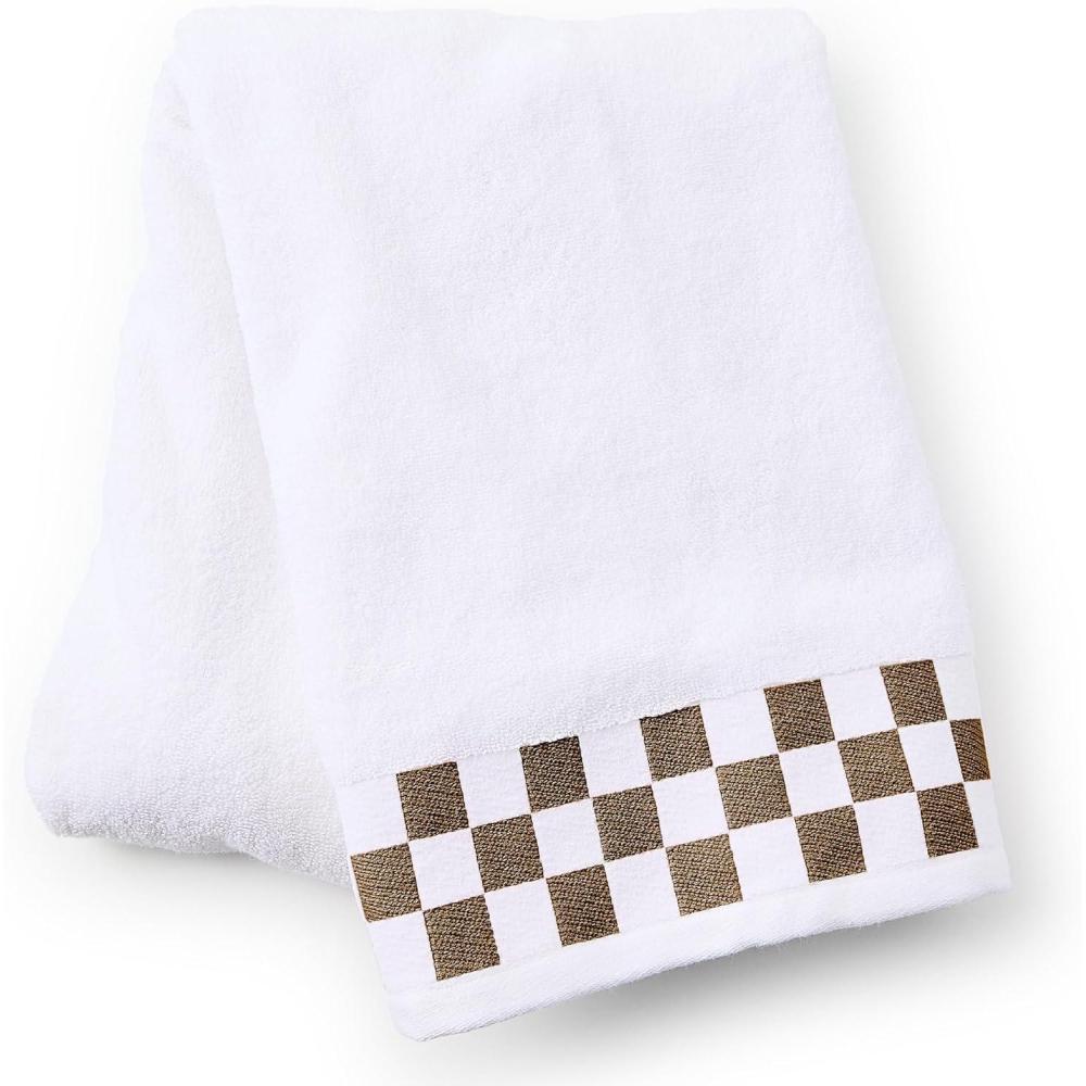 MACKENZIE-CHILDS Cotton Bath Towel, Cute Decorative Bathroom Towel, Brown-and-White Mocha Check Border(Mocha Check Border)