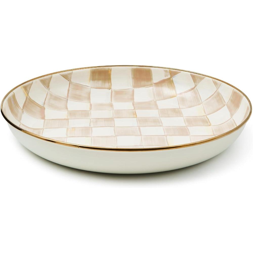 MACKENZIE-CHILDS Enamel Abundant Bowl, Decorative or Serving Bowl, 13-Cup Capacity, Gray-and-White Sterling Check(Mocha Check)