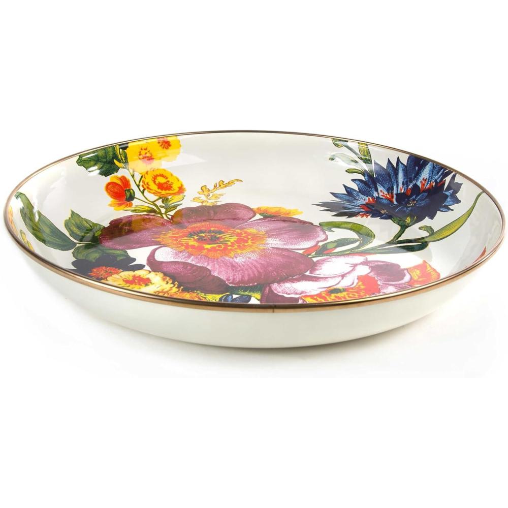 MACKENZIE-CHILDS Enamel Abundant Bowl, Decorative or Serving Bowl, 13-Cup Capacity, Gray-and-White Sterling Check(White Flower Market)