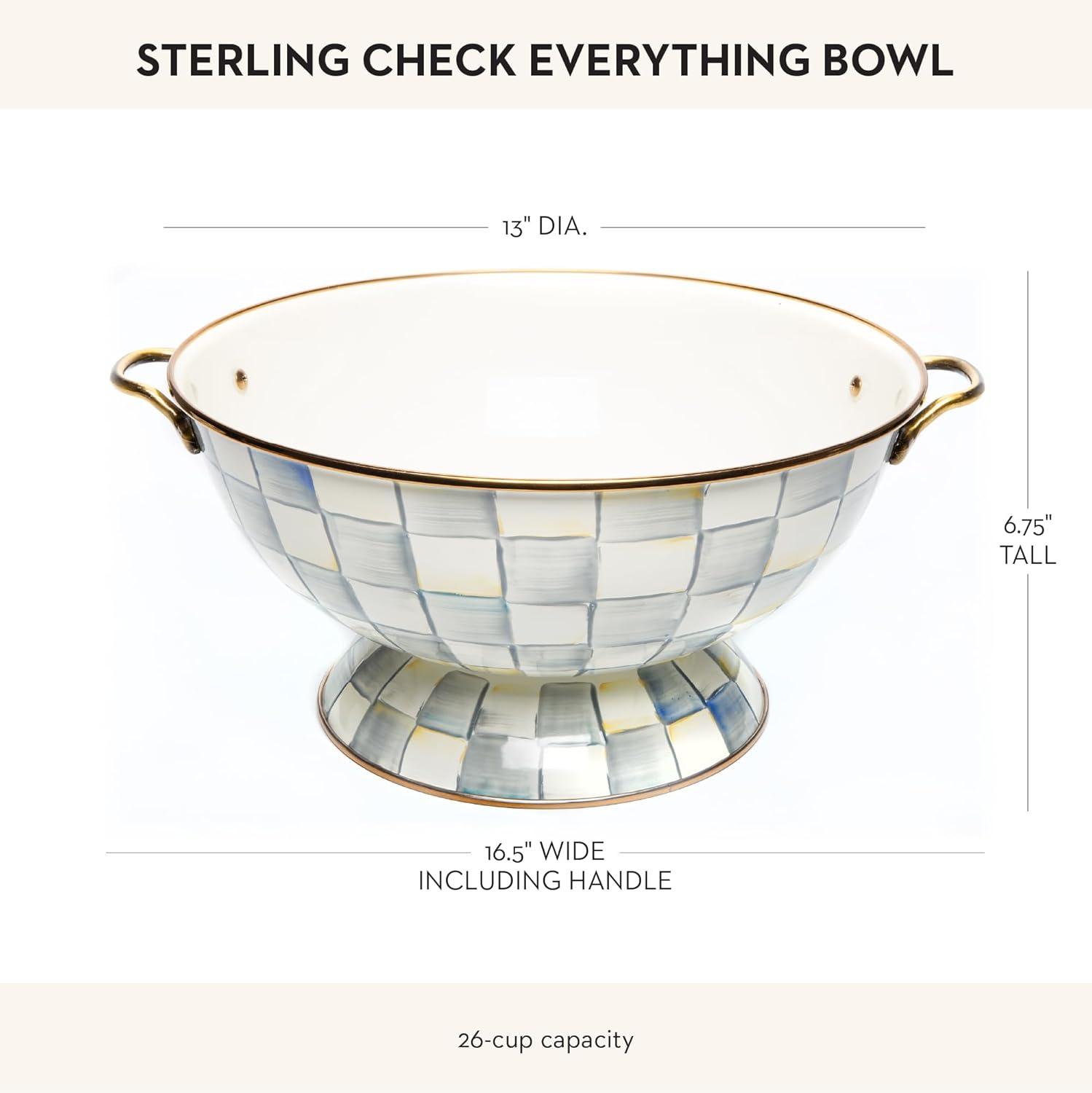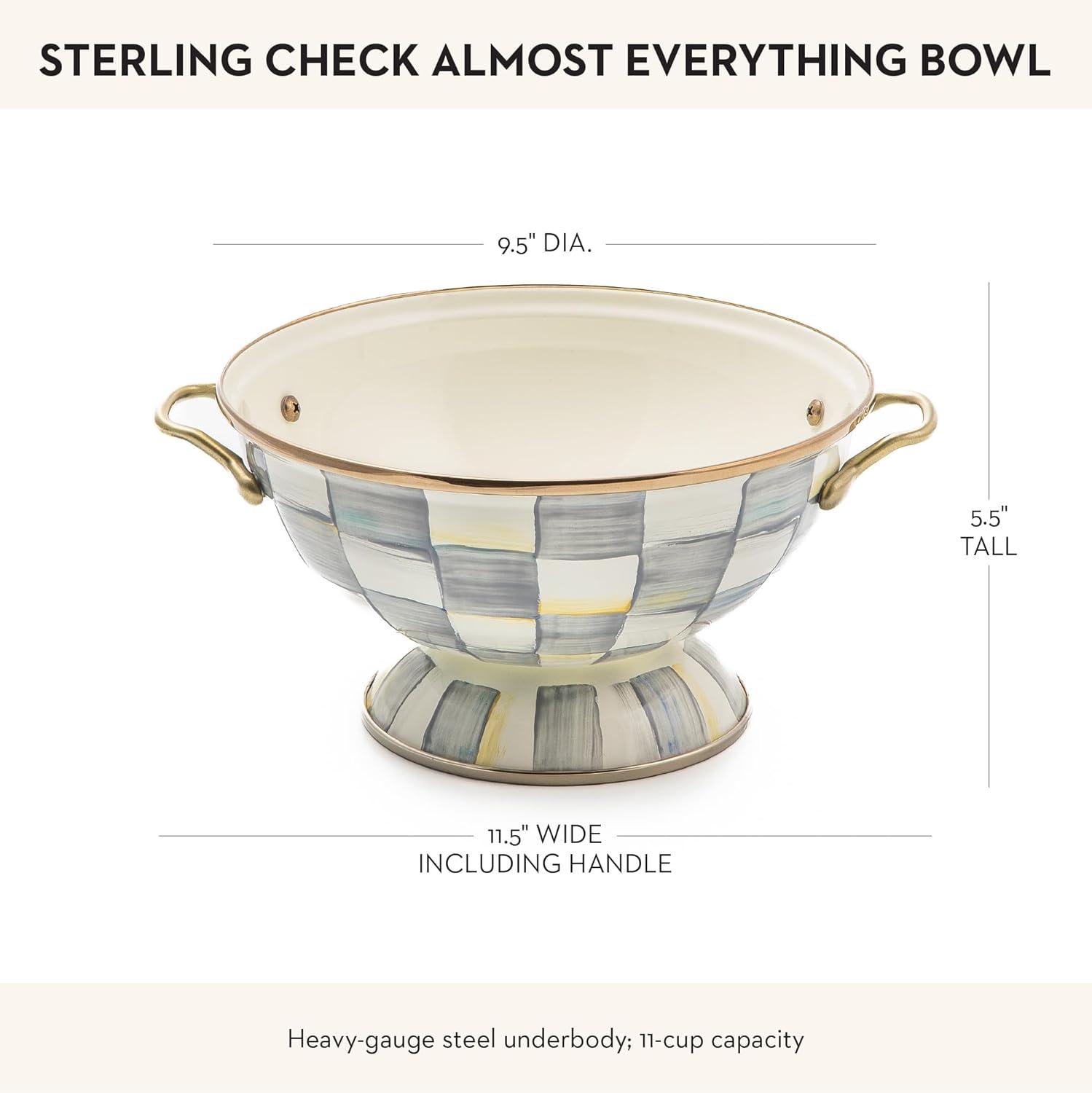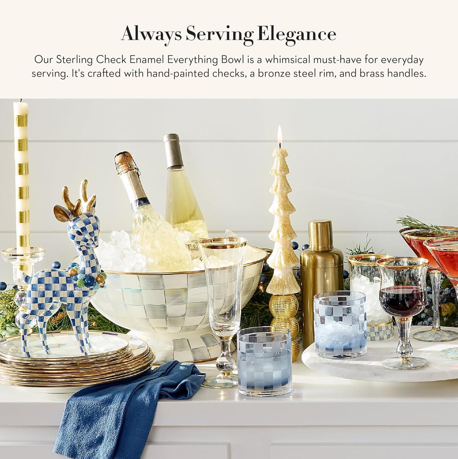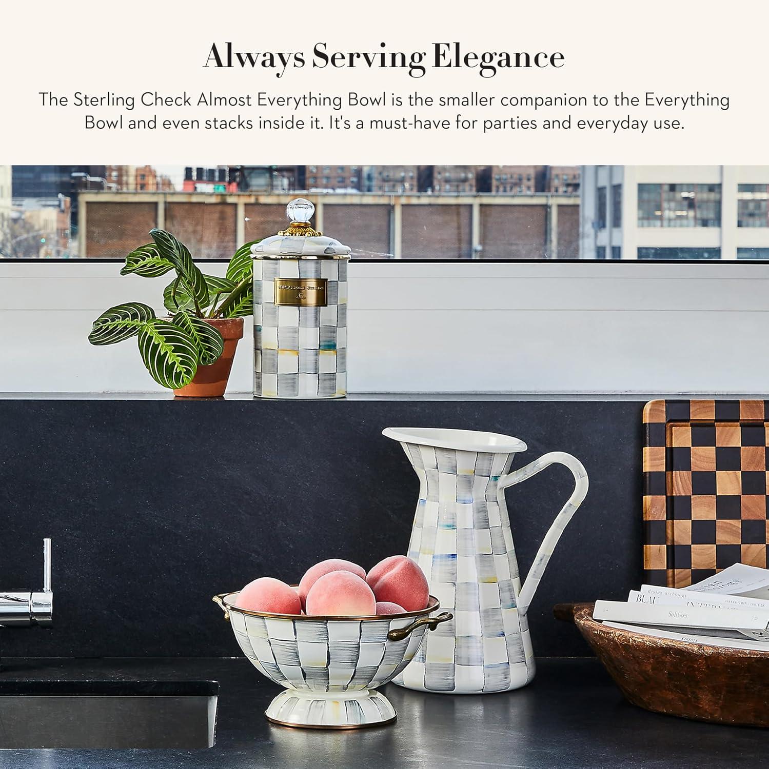 MACKENZIE-CHILDS Enamel Bowl, Serving Bowl for Entertaining, Everything Bowl, Brown-and-White Mocha Check(Sterling Check)