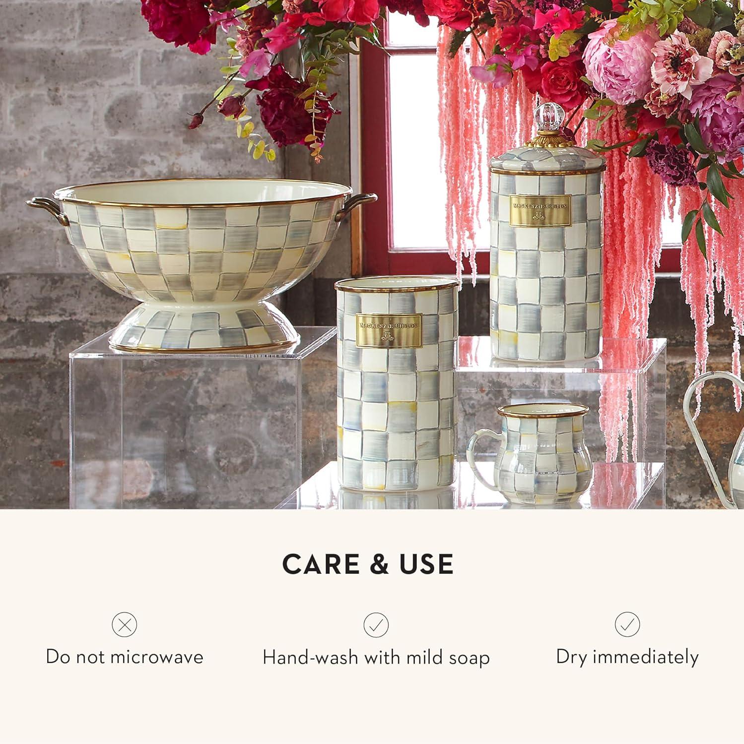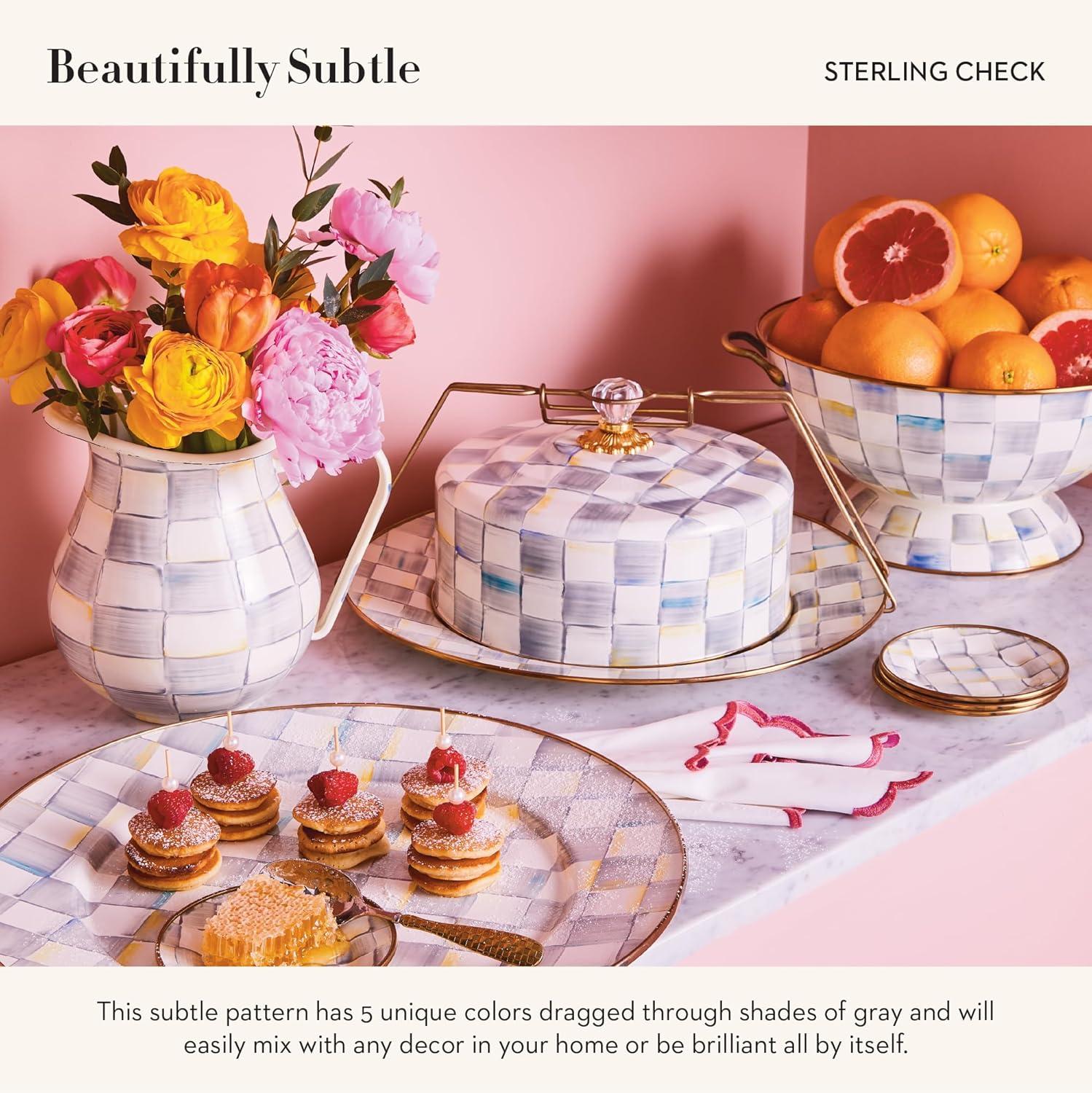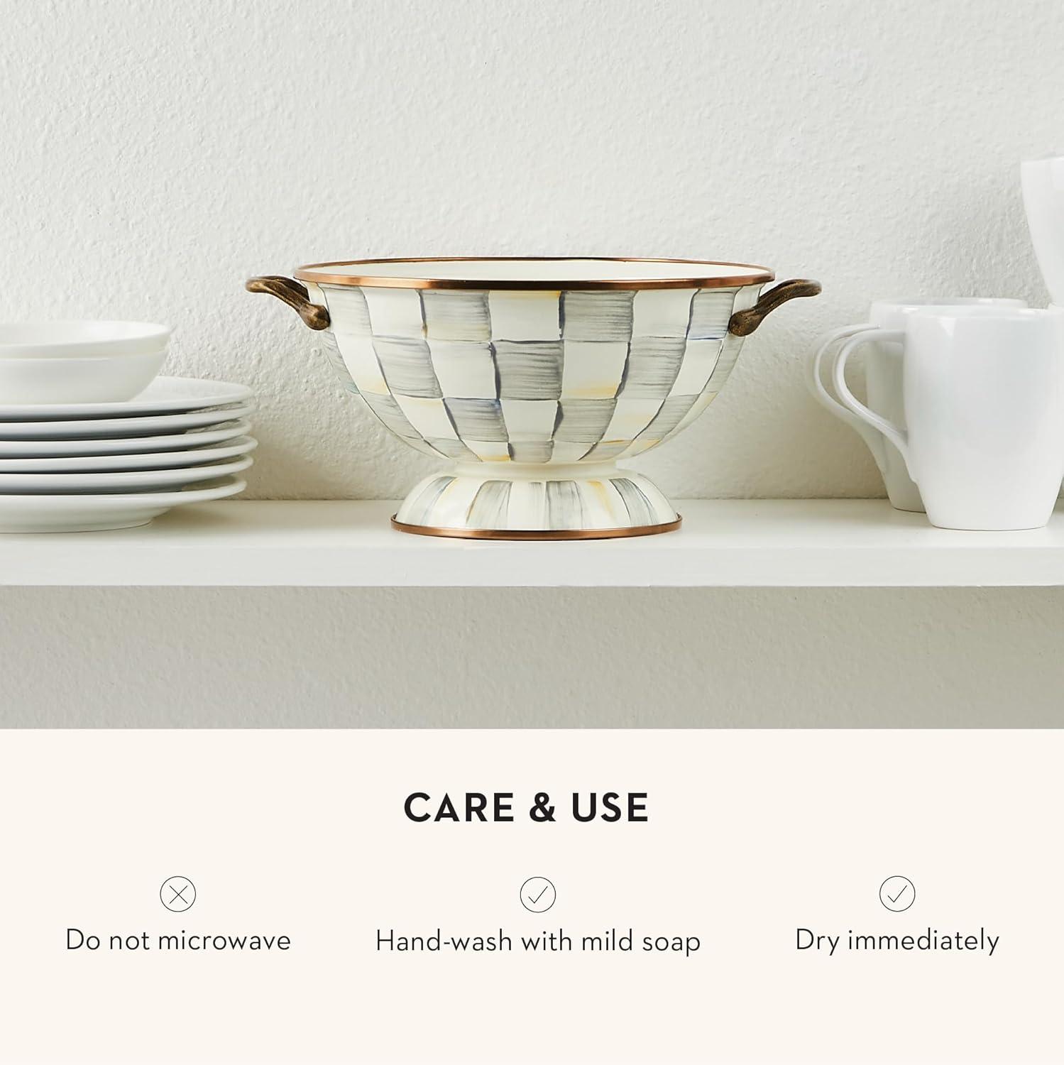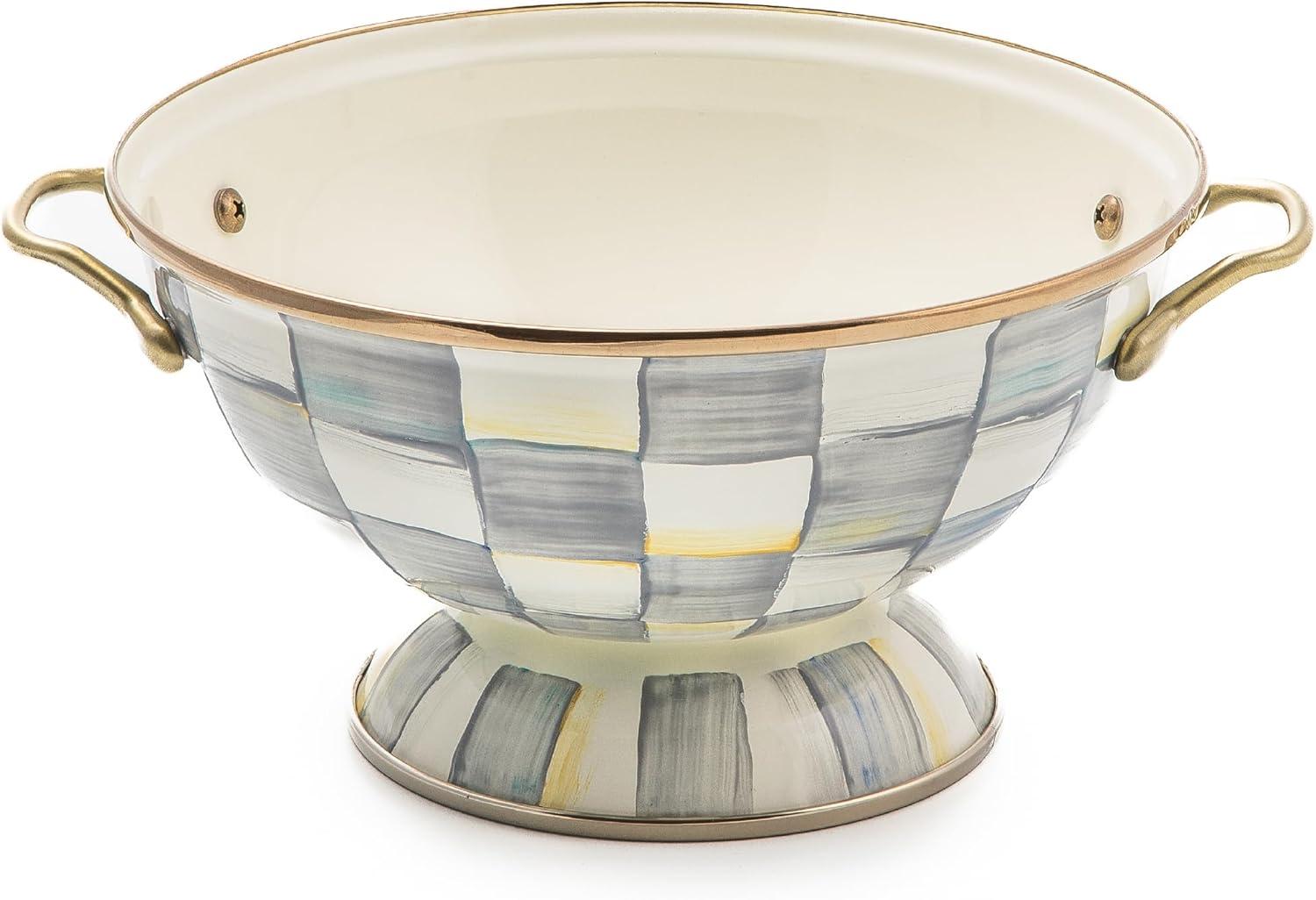 MACKENZIE-CHILDS Enamel Bowl, Serving Bowl for Entertaining, Everything Bowl, Brown-and-White Mocha Check(Sterling Check)