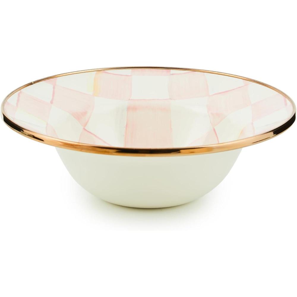 MACKENZIE-CHILDS Enamel Breakfast Bowl, Unique Soup Bowl or Cereal Bowl, Dinnerware, Blue-and-White Royal Check, Set of 1(Rosy Check)