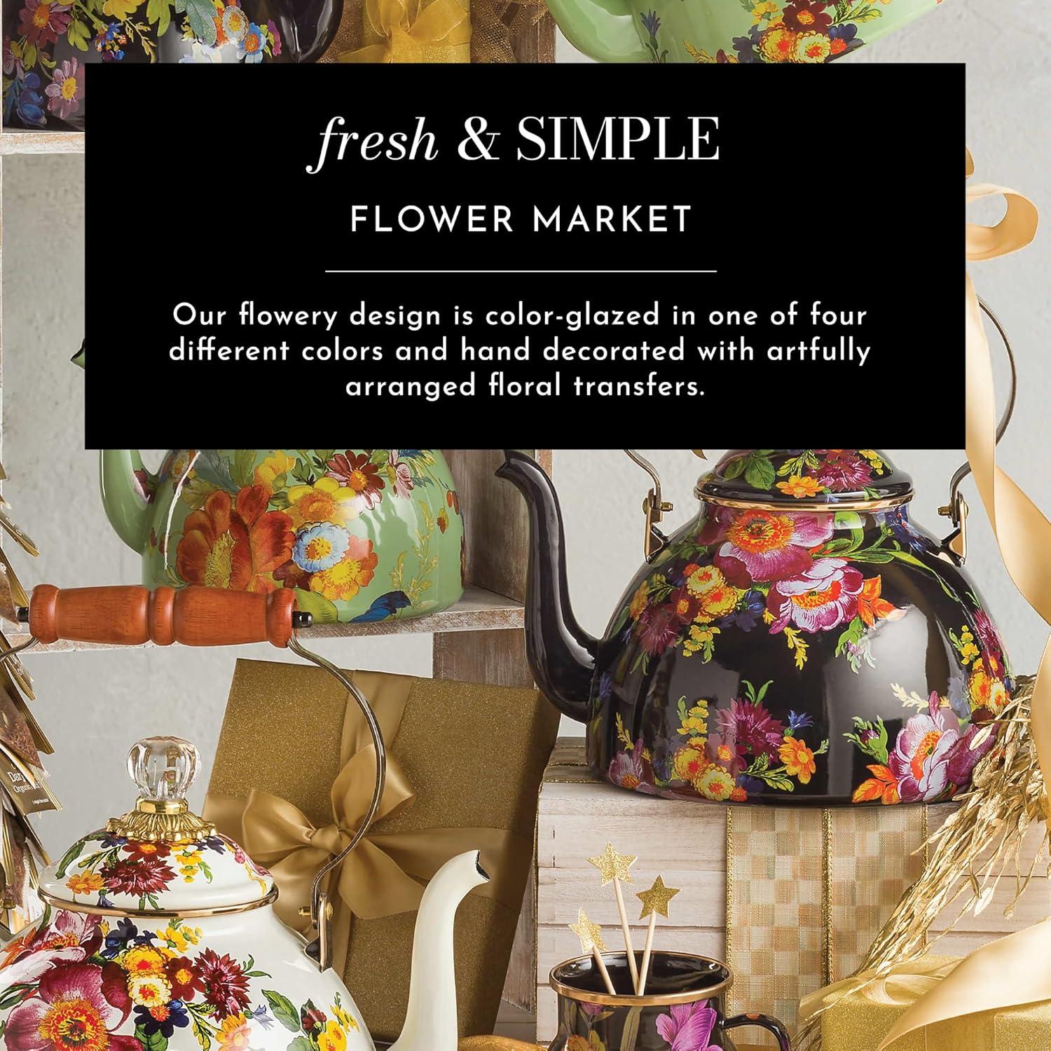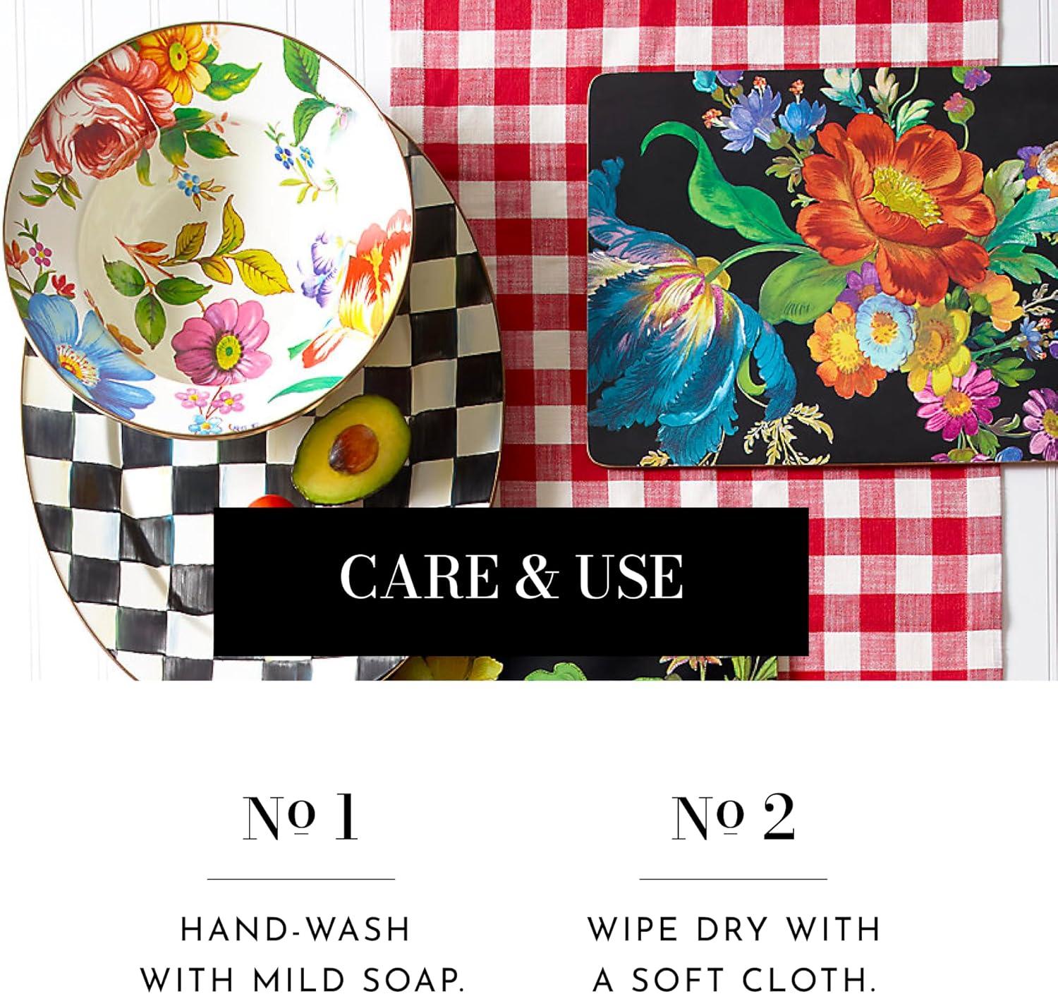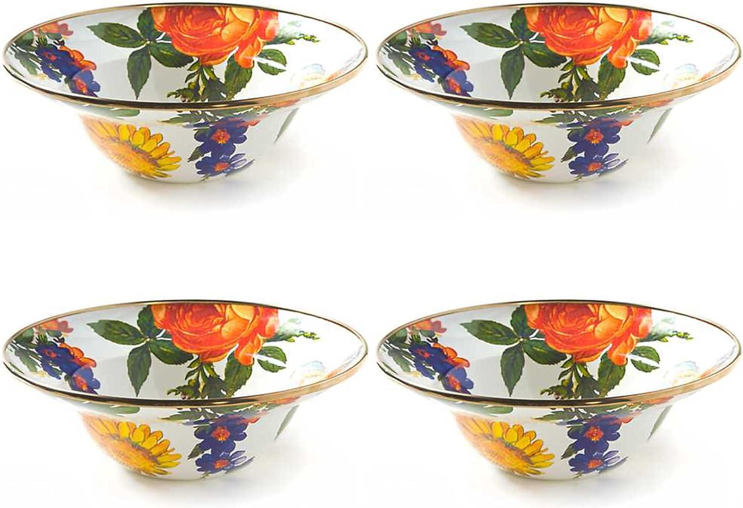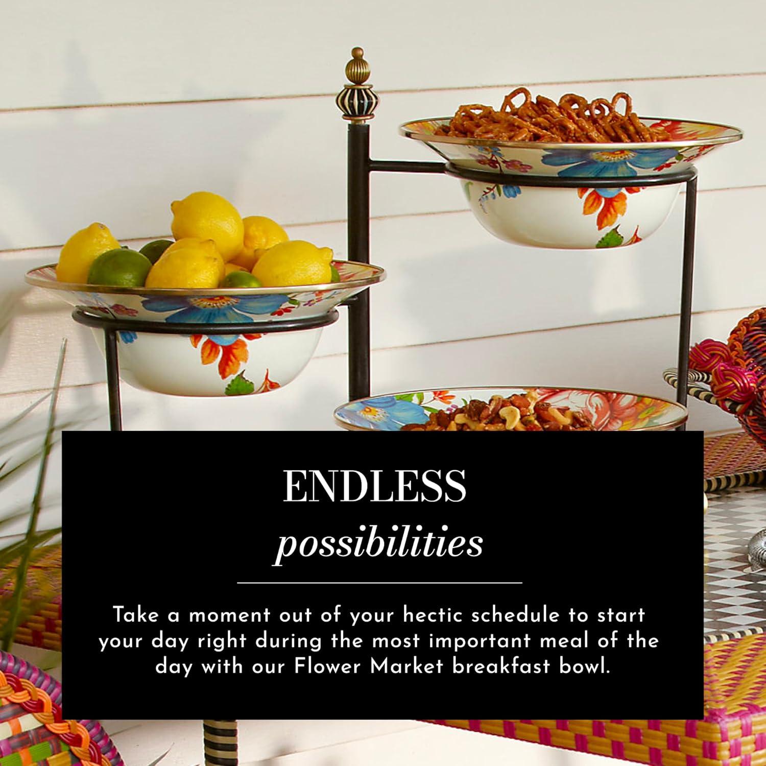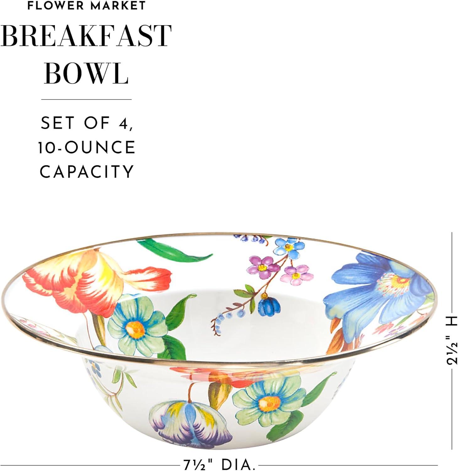 MACKENZIE-CHILDS Enamel Breakfast Bowl, Unique Soup Bowl or Cereal Bowl, Dinnerware, Butterfly Garden, Set of 1(Flower Market White)