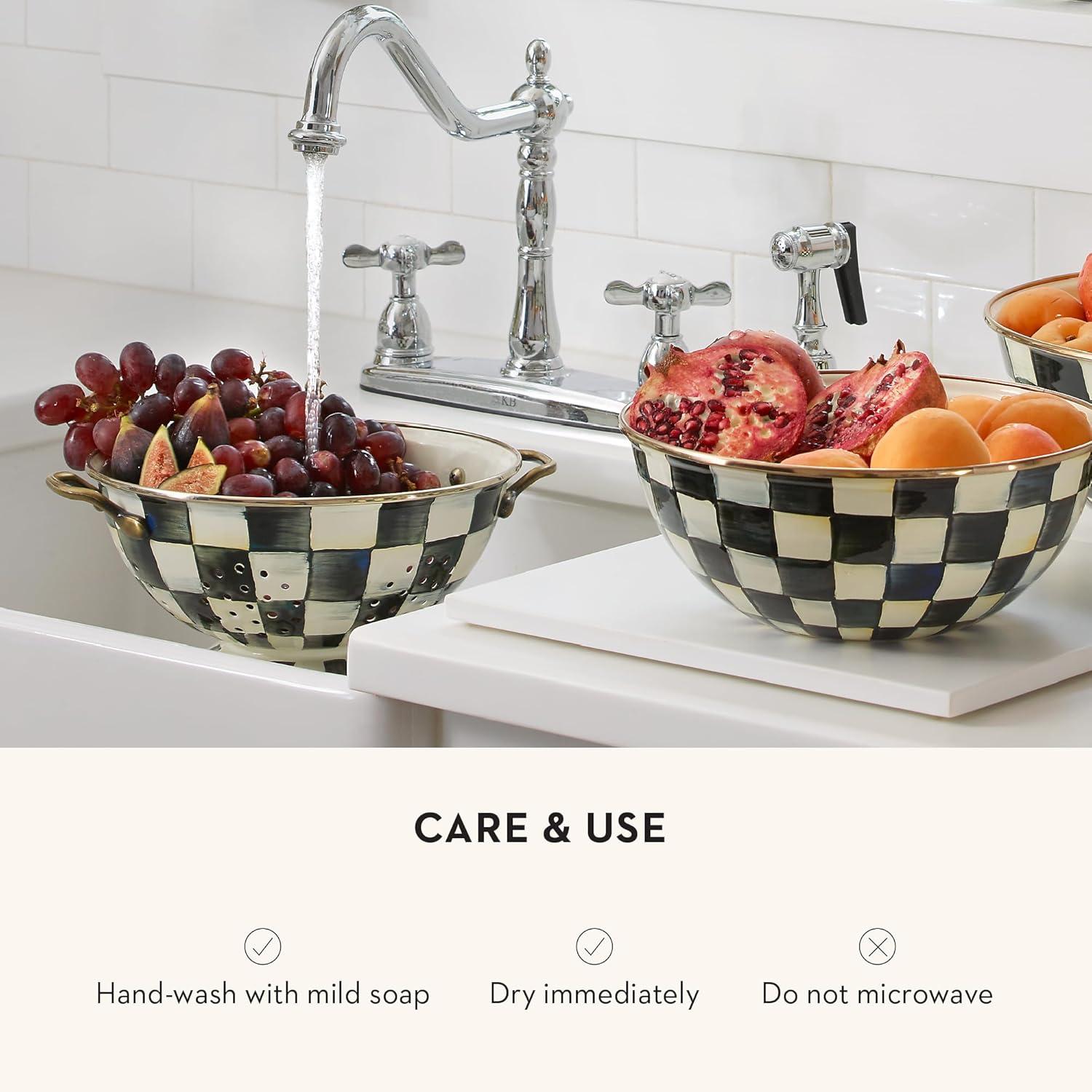 MACKENZIE-CHILDS Enamel Colander, Decorative Kitchen Strainer, Small, Pink-and-White Rosy Check(Courtly Check)