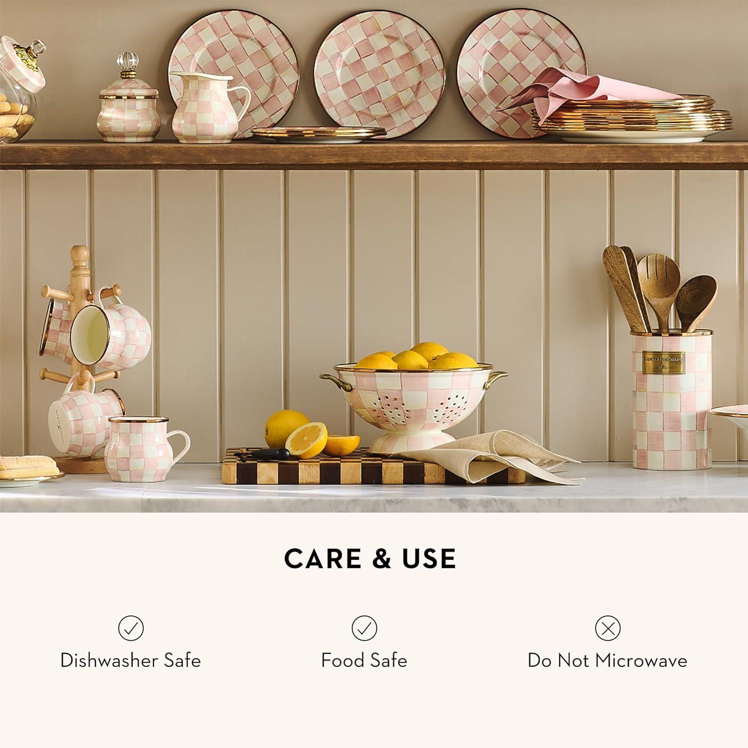 MACKENZIE-CHILDS Enamel Colander, Decorative Kitchen Strainer, Small, Pink-and-White Rosy Check(Rosy Check)