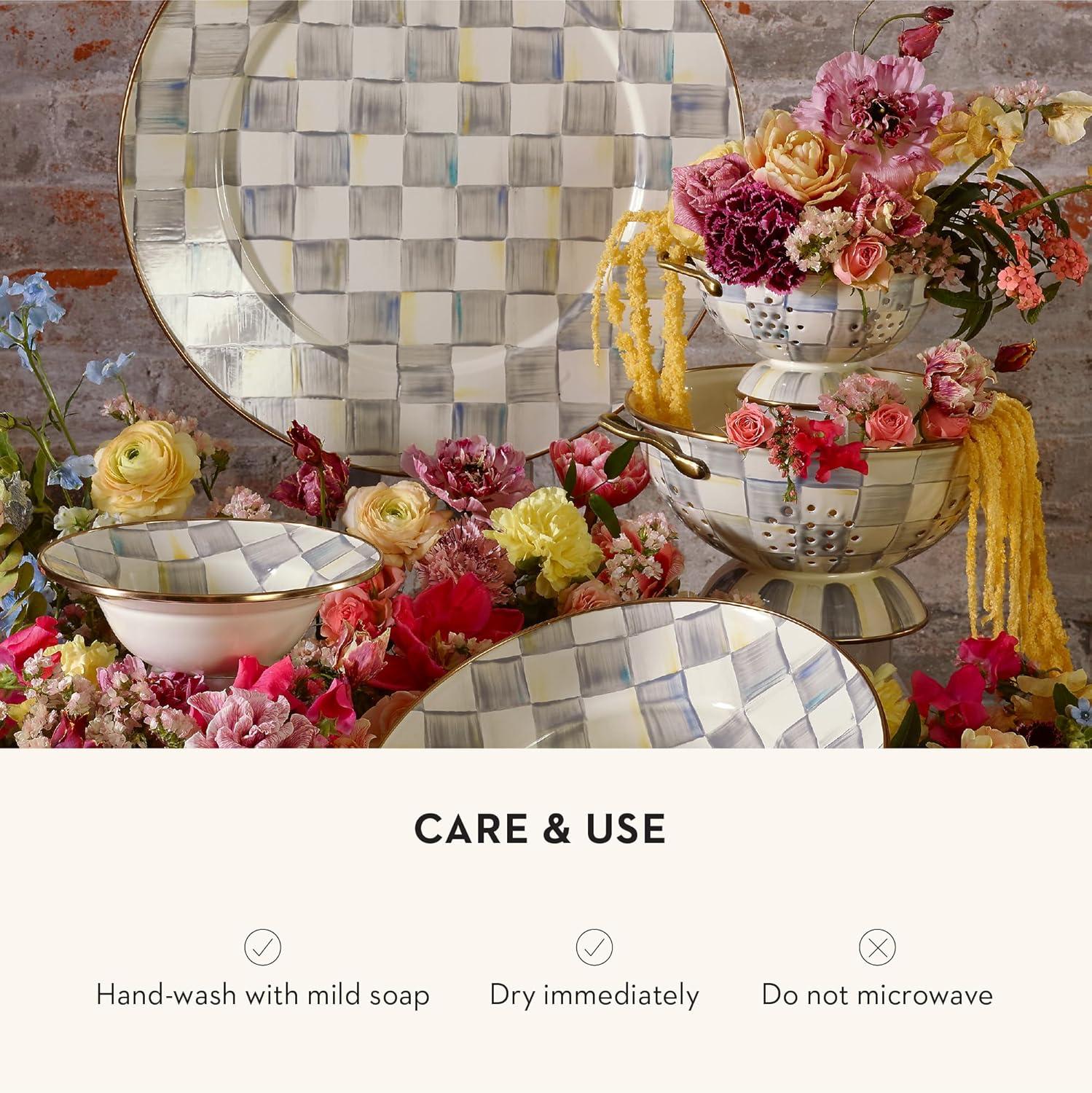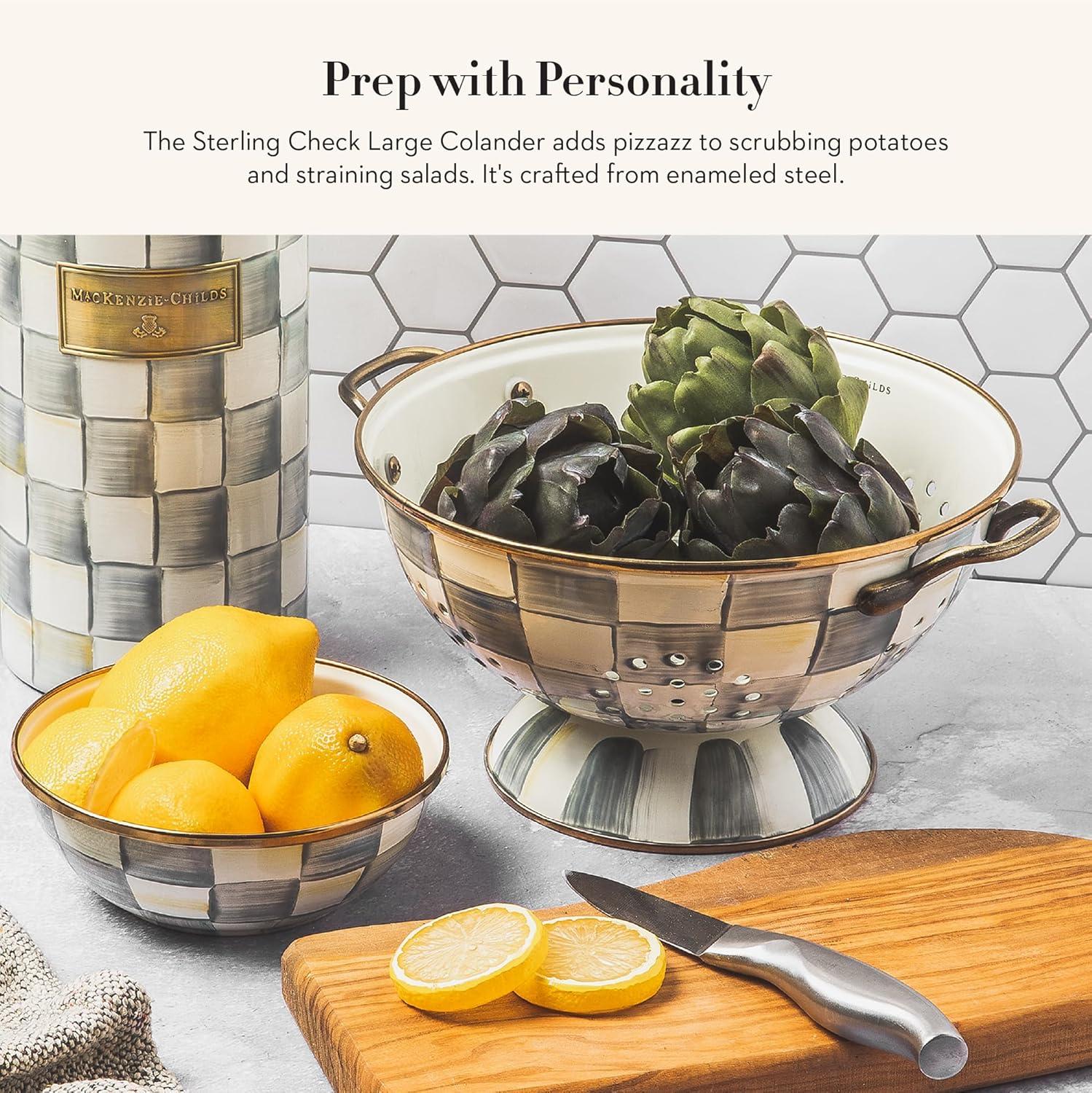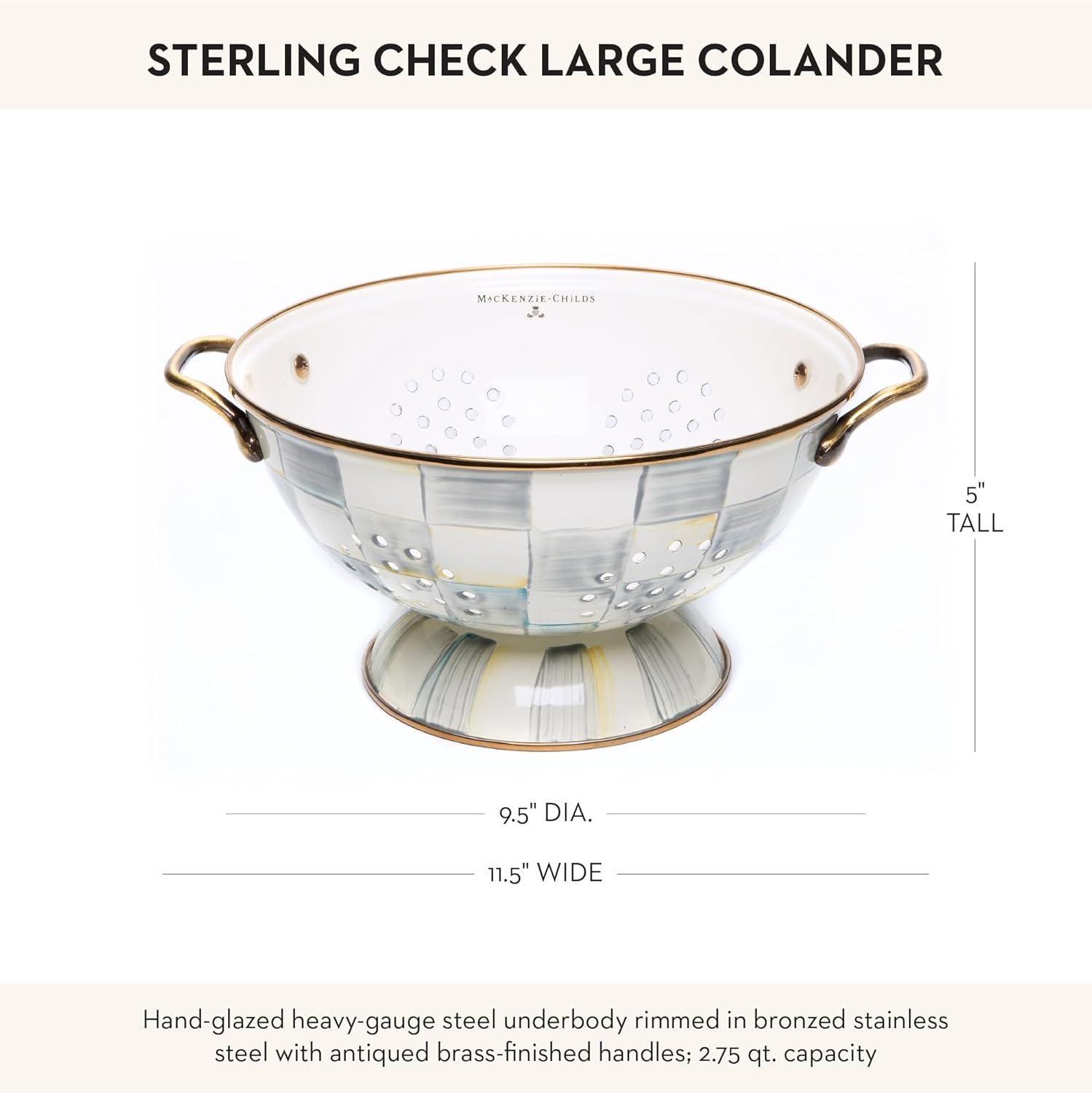 MACKENZIE-CHILDS Enamel Colander, Decorative Kitchen Strainer, Small, Pink-and-White Rosy Check(Sterling Check)