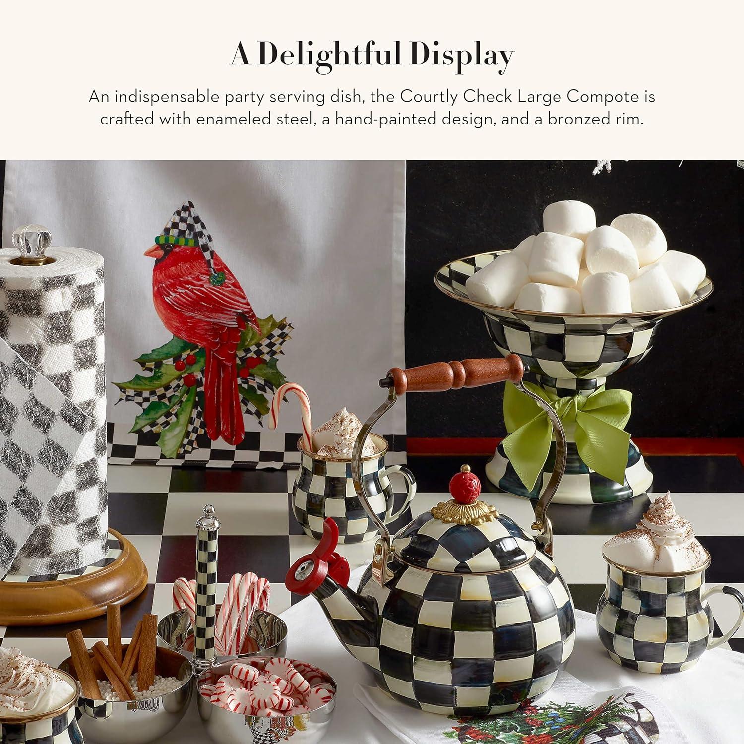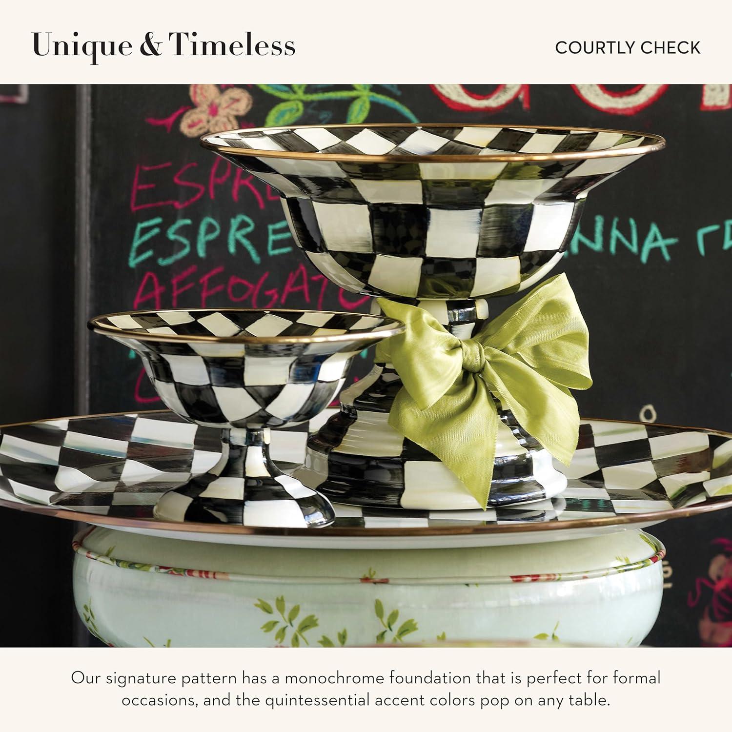 MACKENZIE-CHILDS Enamel Compote, Cute Enamel Pedestal Serving Dish or Decorative Bowl, Large, Blue-and-White Royal Check(Courtly Check)