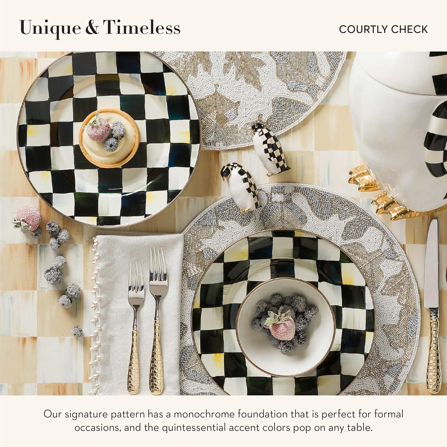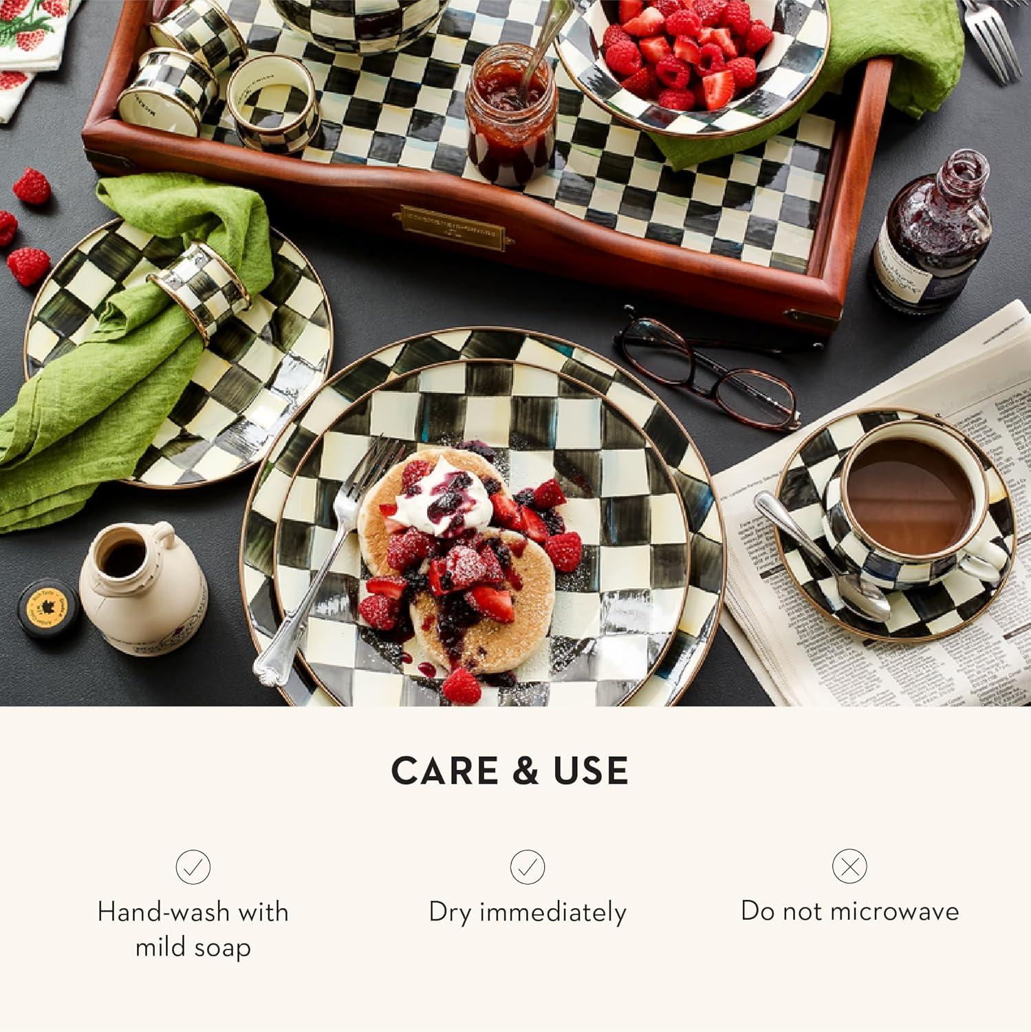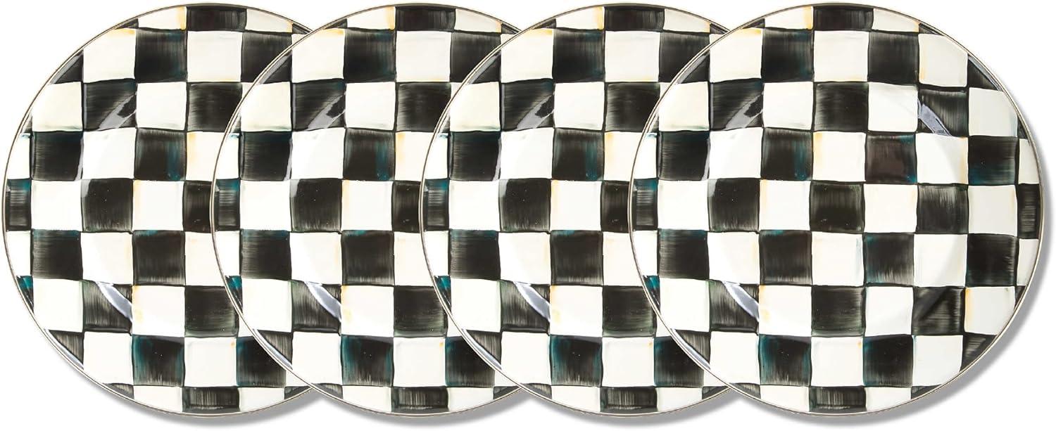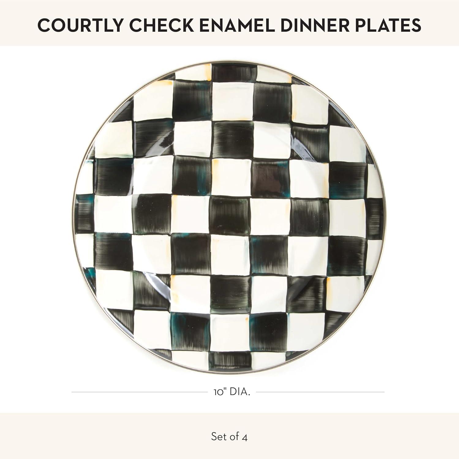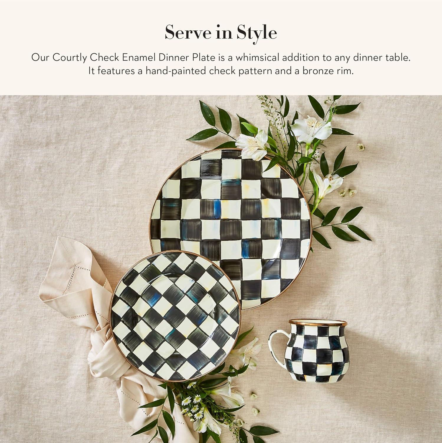 MACKENZIE-CHILDS Enamel Dinner Plate, Decorative Dinnerware Plate, 10 Inches, Brown-and-White Mocha Check(Courtly Check)