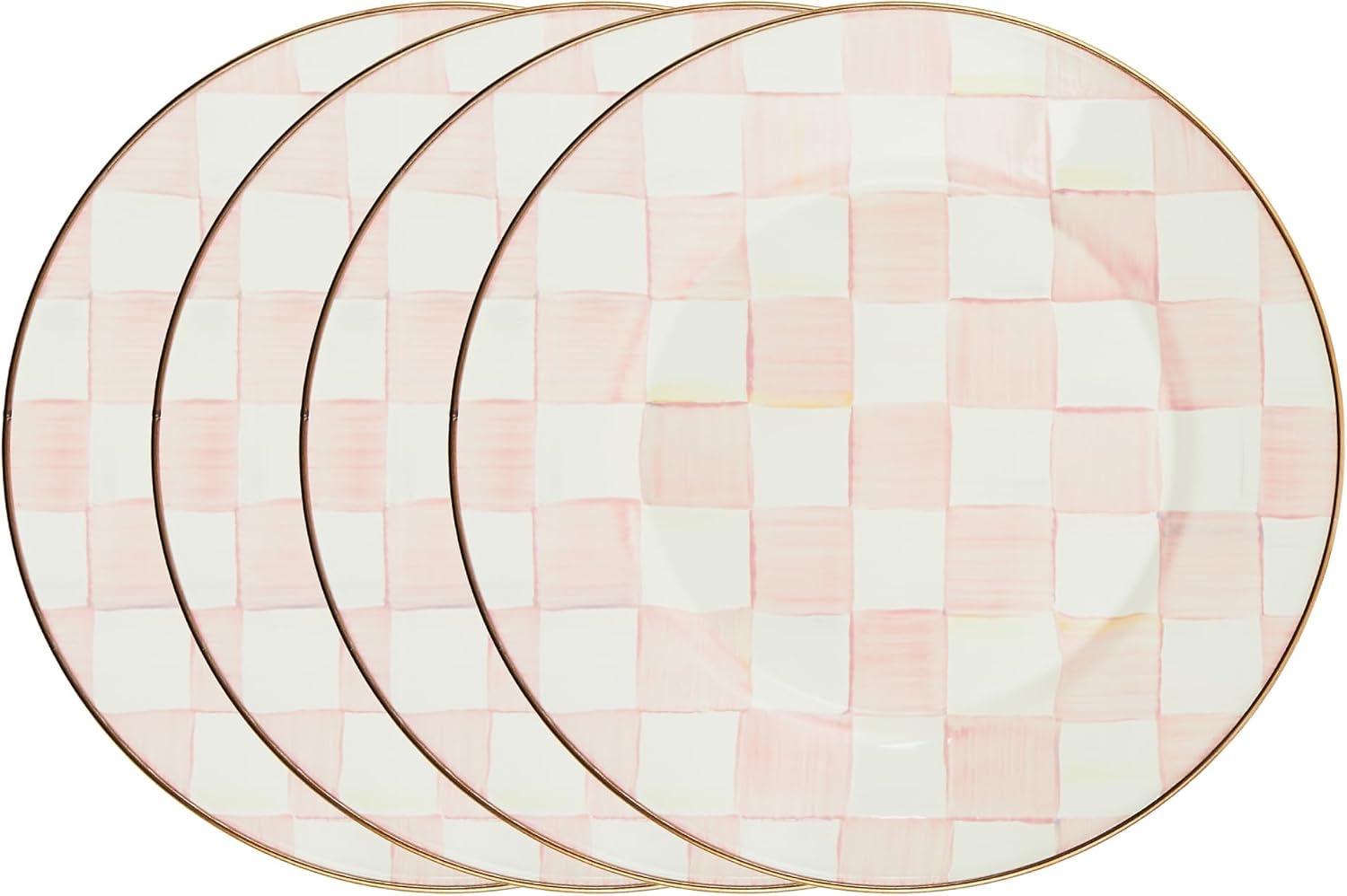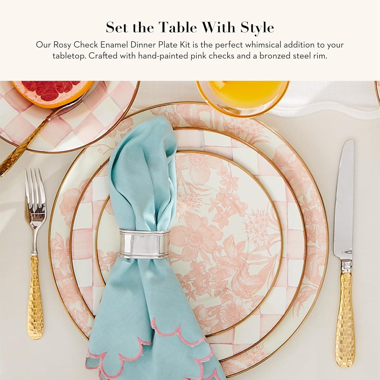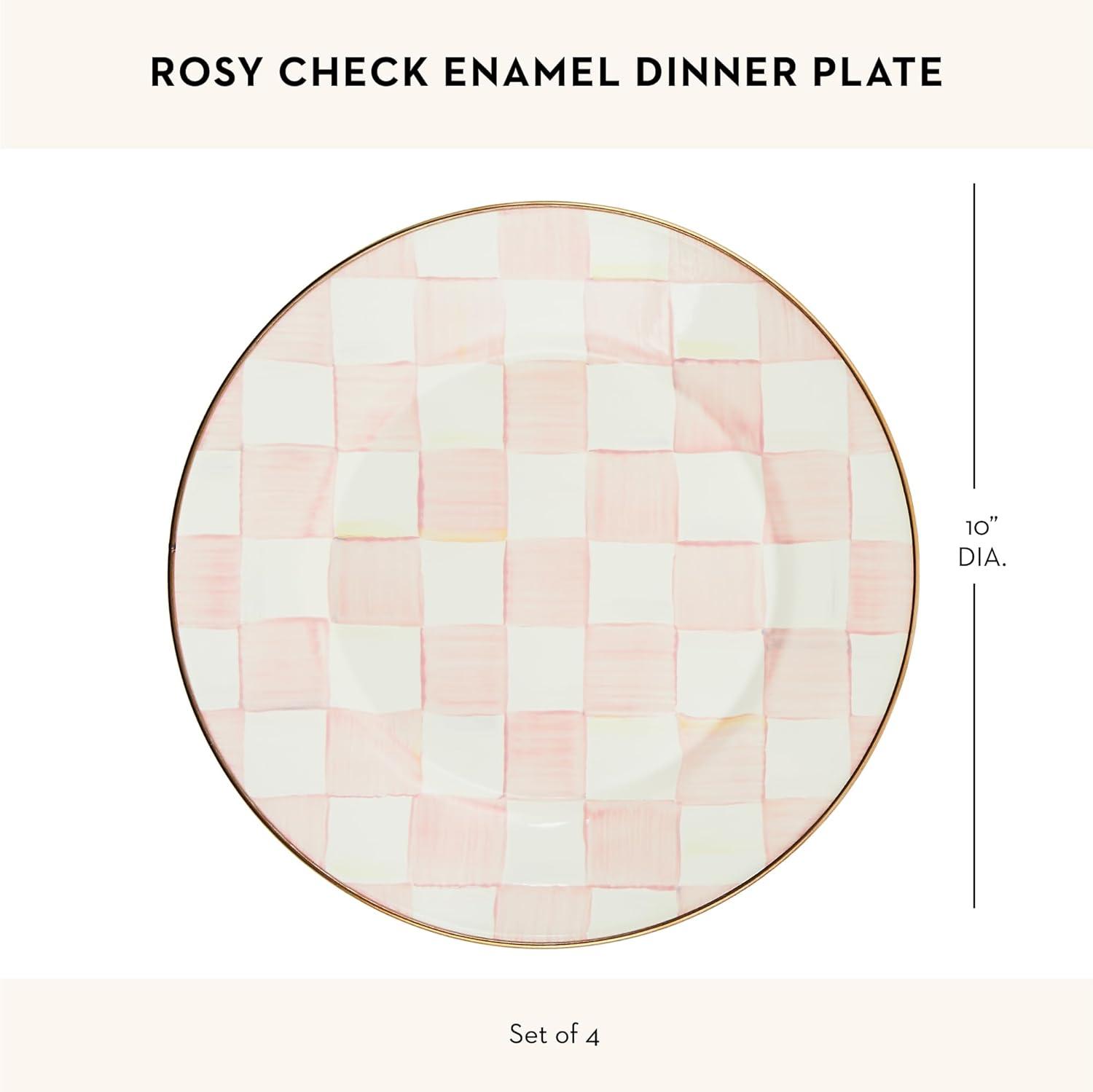 MACKENZIE-CHILDS Enamel Dinner Plate, Decorative Dinnerware Plate, 10 Inches, Brown-and-White Mocha Check(Rosy Check)