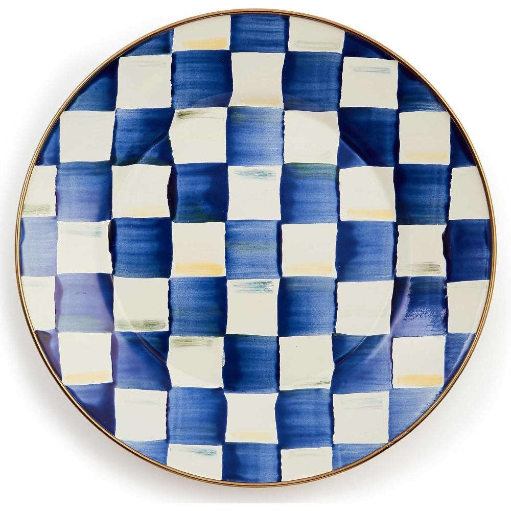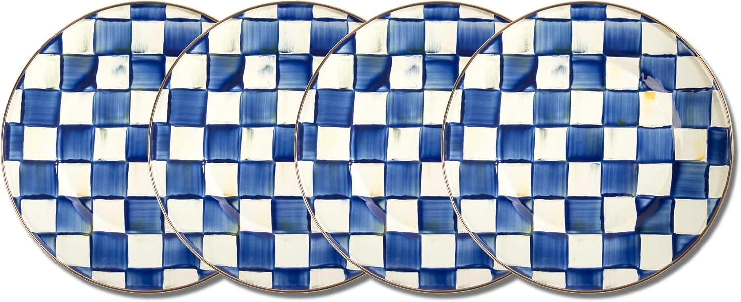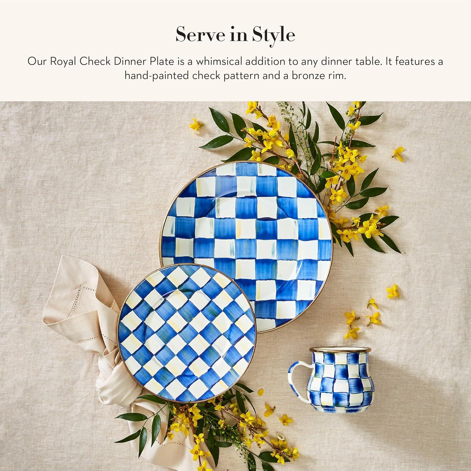 MACKENZIE-CHILDS Enamel Dinner Plate, Decorative Dinnerware Plate, 10 Inches, Brown-and-White Mocha Check(Royal Check)